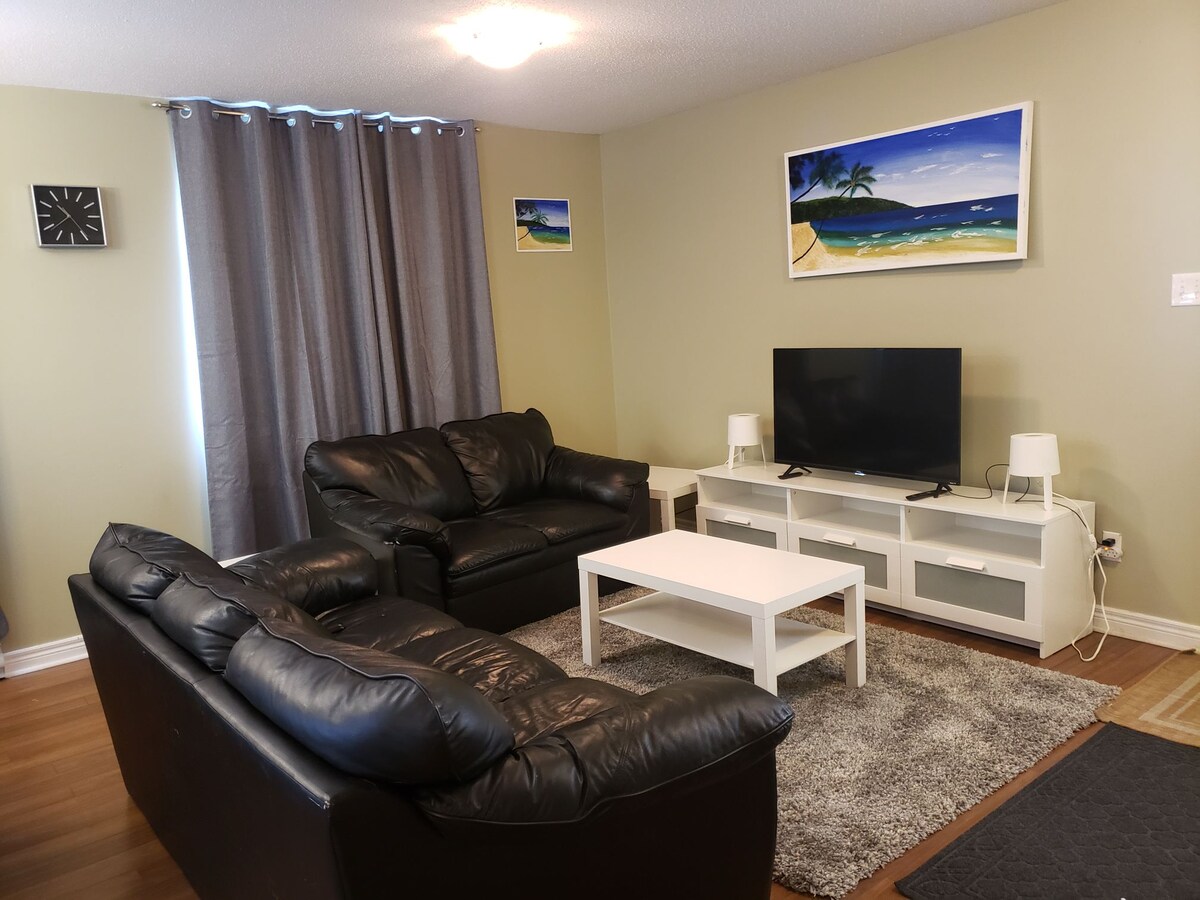 Welcome to our beautiful 2 story executive apartment located in uptown Fredericton. We are located on a quiet street, and just a couple of kilometers away from the highway, Tim Hortons, and a gas station. Downtown is only minutes away, and the shopping mall is only a 5 minute drive. We are also close to many hiking trails and skiing trails for the outdoor lover. This newly built apartment is open concept, has granite counters, 1.5 bath, and laundry. The living room and bedrooms bask in the sun!