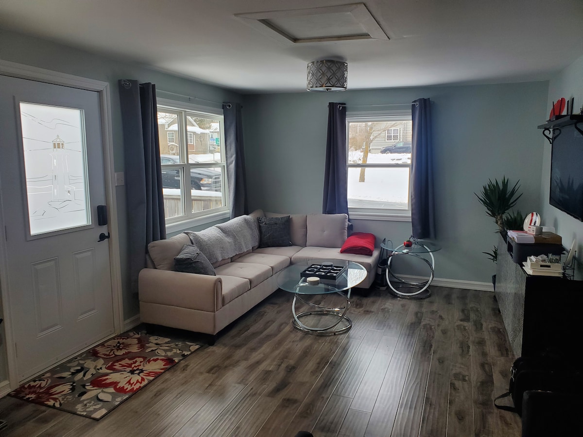 3 bedrooms, kitchen, large living room, bathroom with shower/tub and in-suite laundry. Family friendly, group friendly, we welcome all :) Sleep up to 6 guests-using the 3 Queen sized beds. Large green backyard space. Wifi & Netflix. In unit washer & dryer makes longer stays more comfortable. Ideally located in the waterfront district of Shelburne, steps to the waterfront, close to grocery store, eateries, yacht club, museums, and Saturday Farmer's Market. Park your vehicle & walk