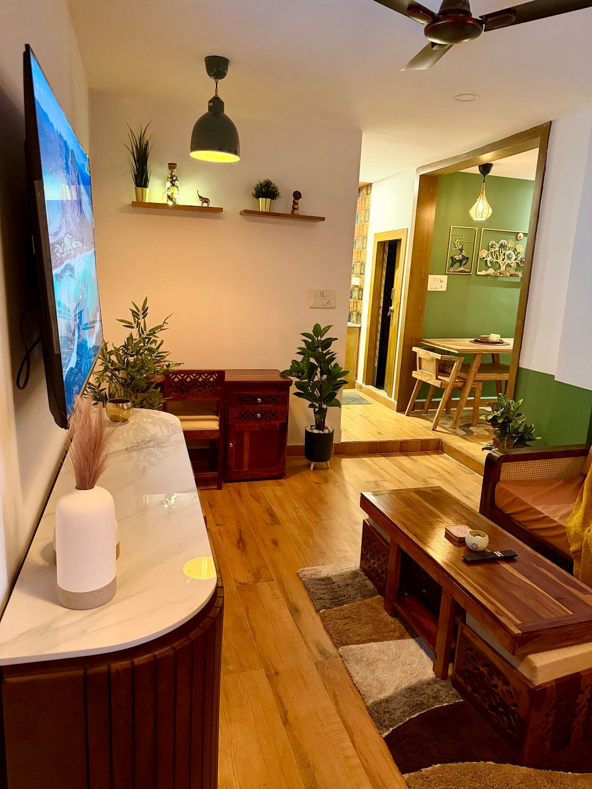 Prasama by @akrutistays A thoughtfully designed 1BHK apartment blending rustic wood tones, earthy accents, boho vibes and modern comfort. This special place is close to everything, making it easy to plan your visit, ideal for 2 adults and 1 guest with queen size bed + sofa bed. We have spent years of hosting as super host with proven quality service. We strictly follow good hygiene standards and provide guests a comfortable stay. We will do our best to provide you an amazing stay experience.