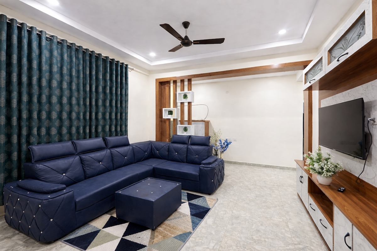 Welcome to our clean, cozy 2BHK located on the ground floor of an independent house in a quiet cul-de-sac. Ideal for short or long stays, With the host living on the upper floors - available if needed, but respectful of your privacy. Guests have access to our backyard lawn. A separate bathroom is available for your driver or help Located in a safe residential neighborhood with nearby essentials and easy connectivity.