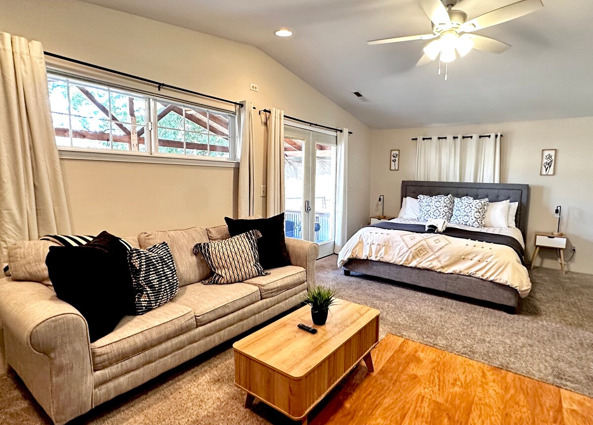 King Studio- Covered Parking- Patio -Kitchenette