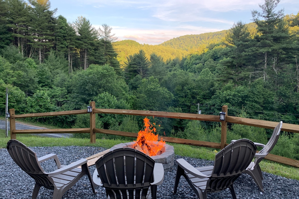 Look no further...lift your eyes up to the mountains in this beautiful retreat. The views are breathtaking from every angle! Relax in the hot tub, roast marshmallows, walk the mountain trails, play cornhole, or watch the sunset or birds from the spacious desks. If it is rainy make music on the guitar, cook with abundant supplies, or watch films/play games on a 85” TV. You will find this fabulous retreat at the end of a windy road at the top of the Buck Mountain private gated community.