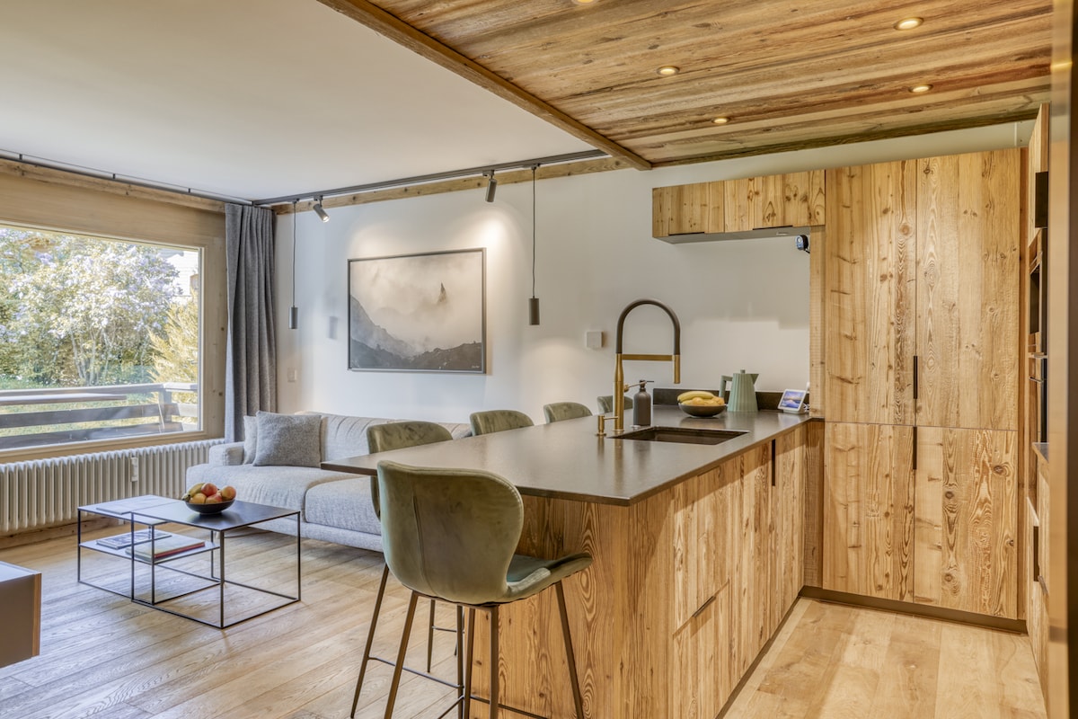 Luxury designer flat (entirely refurnished) in Megève city center - 105 m2 : - 3 Bedrooms - 1 Living Room - 1 Dining Room - 2 Bathrooms (1 independent and 1 open bathroom located in a bedroom) - 1 independent toilet - Fully equipped open kitchen - Wifi - Balcony - 2 outside parking lots - Private entrance - Ski closet (Ski Boot dryer) - Ski bus stop in front of the apt Megeve city center is at 400m by walk. 500m from Le Chamois ski lift, Grocery shops within 200m.