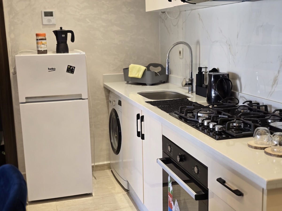 A very nice, modern apartment built in 2025. It's right on the beach, very clean, and has a fantastic sea view. It's well-equipped, with air conditioning for hot days and heating for the winter. It includes a TV, fast and stable fiber optic internet, Netflix, IPTV, dishes, a washing machine, a microwave, a kettle, a stove, an air fryer, towels, and much more. Simply fantastic!