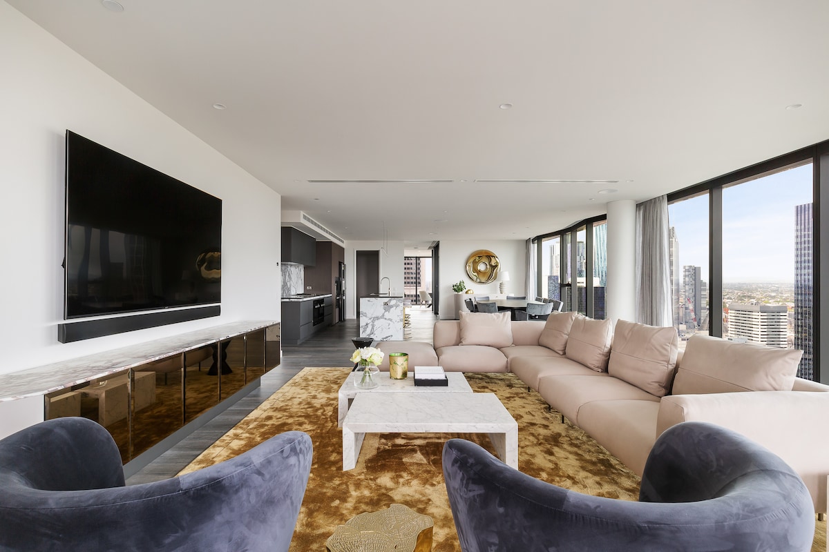 Perched opulently on high in the extraordinary "Nine Elm" development is this 4-bedroom luxury sub-penthouse. Nestled just 650 meters from the beach and a stone's throw away from Melbourne's CBD, this versatile retreat offers a blend of sophistication and comfort. The adaptable floor plan caters to modern living, providing functional and stylish spaces. UPDATE: We are proud to have just been awarded the elite Airbnb Luxe status. This badge is only awarded to the most exceptional properties!