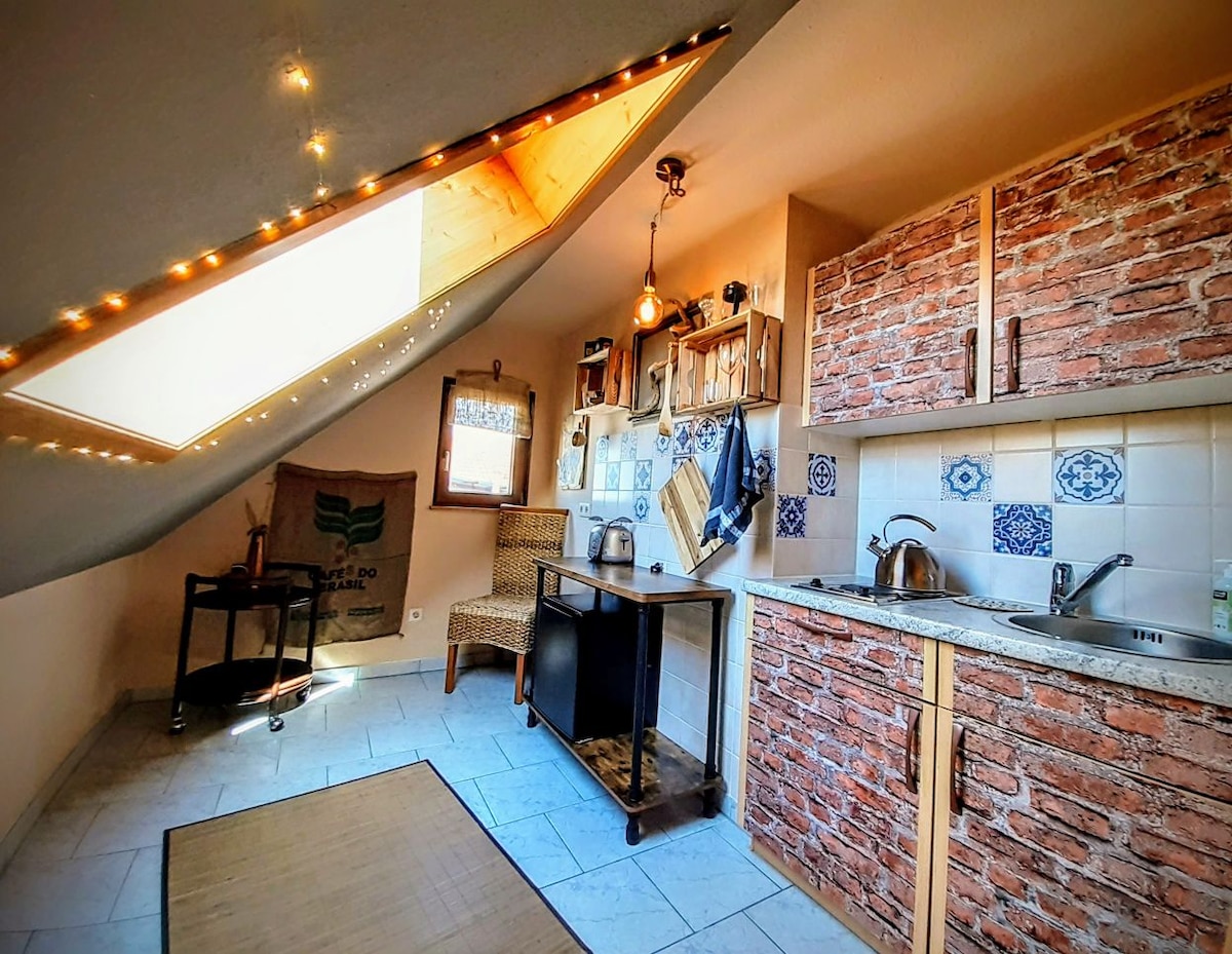 Immerse yourself in the timeless artistic charm of this attic apartment, furnished with attention to detail. Equipped with a lot of character and original works of art, the apartment invites you to explore. Whether with Frieda Kahlo on the glazed balcony, in the bedroom with ornamental wall painting or under the roof with oriental flair, the apartment offers numerous cozy corners in which you can trace your aesthetic sensibility.