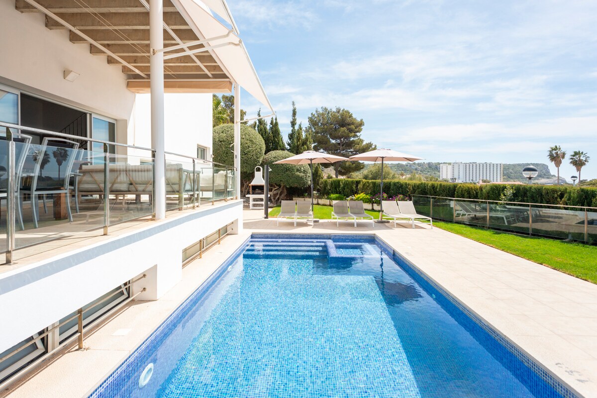 Modern and spacious 3-bedroom villa overlooking Cala Llonga, just 300 meters walk from the sea and 10 minutes by car from the city of Mahón. Enjoy the privacy and luxury of having your own private pool and garden to enjoy your well-deserved vacation. The villa comes fully furnished and consists of a living come dining room, a fully equipped independent kitchen, 3 bedrooms with en-suite bathrooms, a workspace, a gym, a bathroom, and private off-road parking.