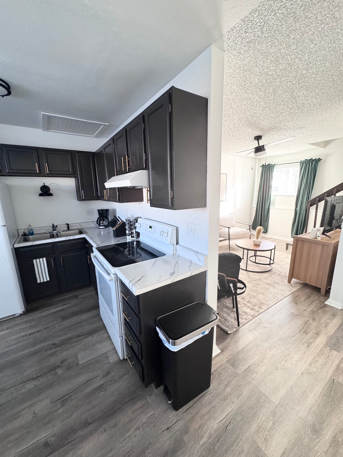 Keep it simple at this peaceful and centrally located cozy "nest". Home has just been completely gutted inside and has an all-new interior. The 2 bedrooms are roomy with queen size beds, spacious closets, ceiling fans and TV's. After showering in the oversize, step in shower, you will dry off with a pre-warmed towel. You will enjoy the open concept of the living room and kitchen areas. Kitchen should have everything you need to enjoy your stay. Central Heat & air conditioning for your comfort.