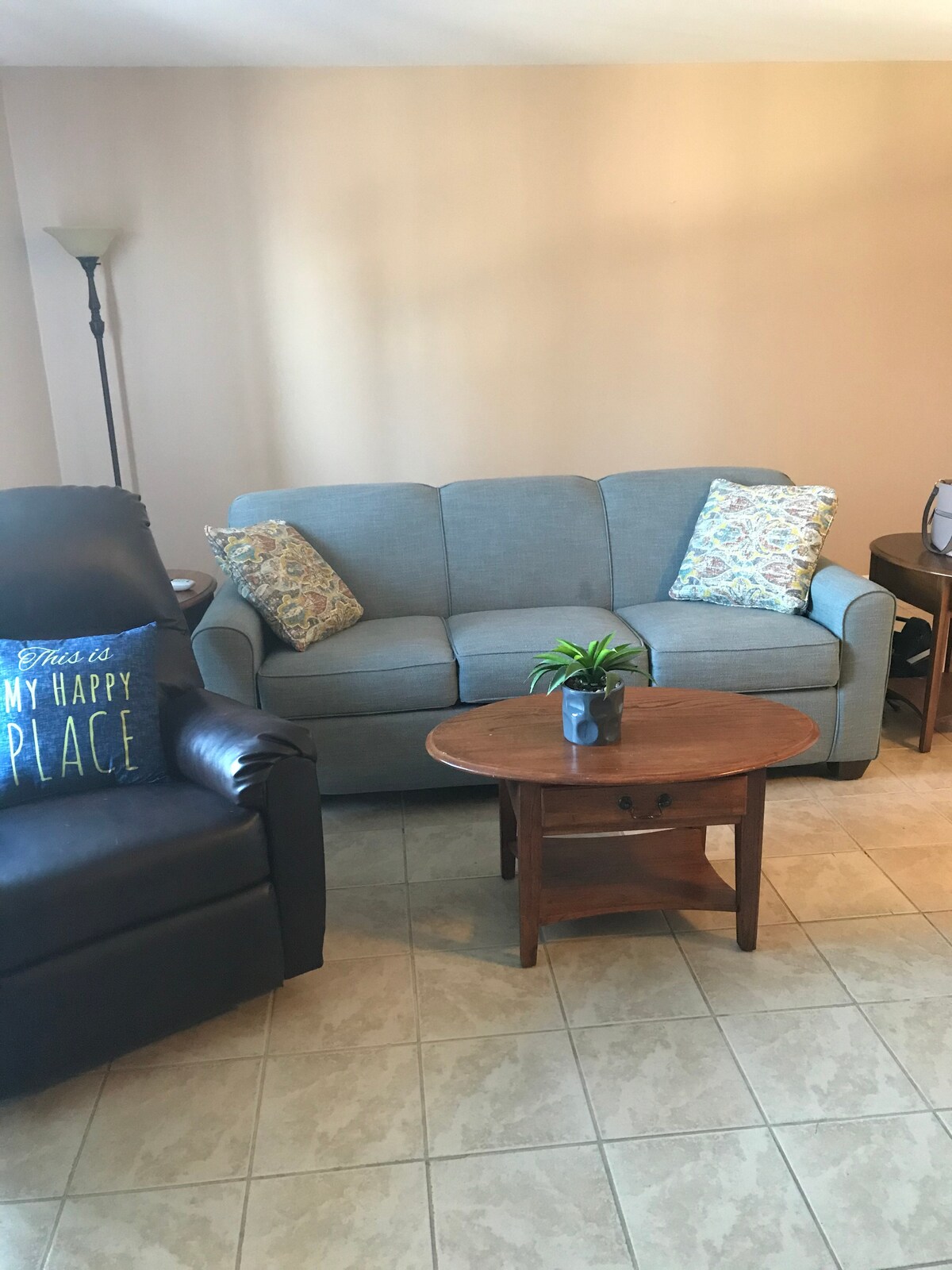 We are proud to offer our condo for your peaceful enjoyment. Two bedroom- 2 bath condo, 1/2 a flight up the stairs. Sleeps 7 with a king size tempurpedic in one room & queen size bed in Master bedroom. The living room has two comfy pull out sofas, 1 queen and 1 twin, air conditioning, electric fireplace, washer & dryer (in the unit), smart TV’s, private wireless internet as well as through the condo association, a community saltwater pool with grilling area that includes tables and chairs.