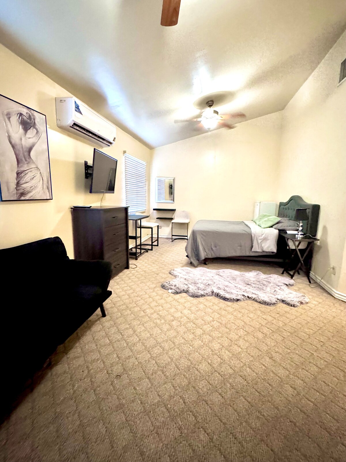Enjoy the simplicity of this quiet and centrally-located accommodation. With all the amenities, you will have a full private bathroom, internet, comfortable queen size bed, induction grill, coffee maker, refrigerator with freezer, closet. You can enjoy an air-conditioned space to your liking with a mini-split and enjoy large access roads and self-service stores. We want your stay to be pleasant.
