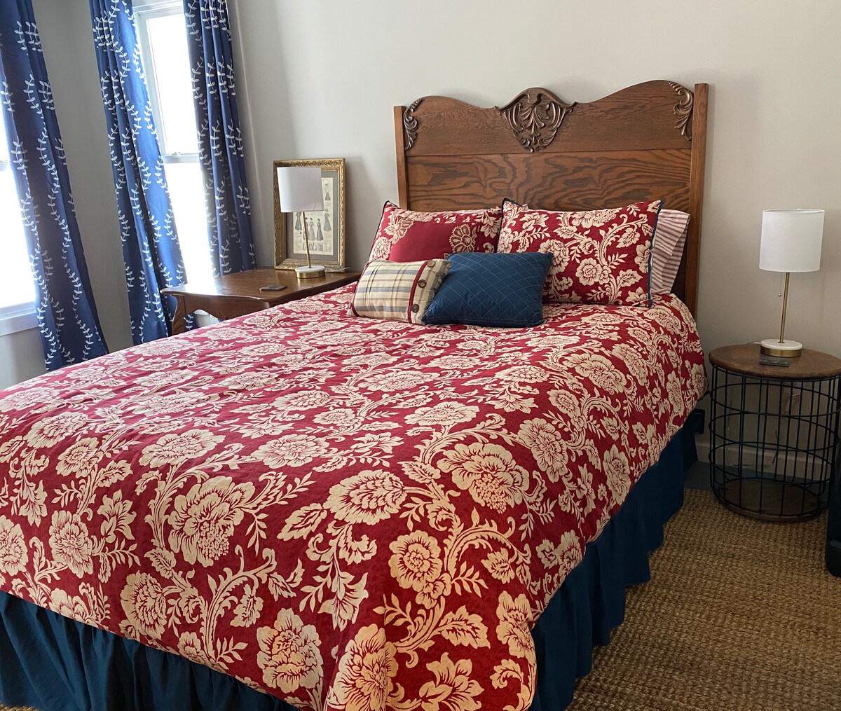 You have full access to this spacious house. Enjoy the large kitchen with a food prep island, ample counter space, basic cookware utensils and ingredients for cooking and baking. The dining room table comfortably seats eight. Relax in the living room with a TV monitor for streaming your preferred services, comfy furniture, and a pellet stove. One bedroom is on the ground floor and two upstairs. Living room is 4 steps down from other ground floor areas. There are no TV monitors in bedrooms.