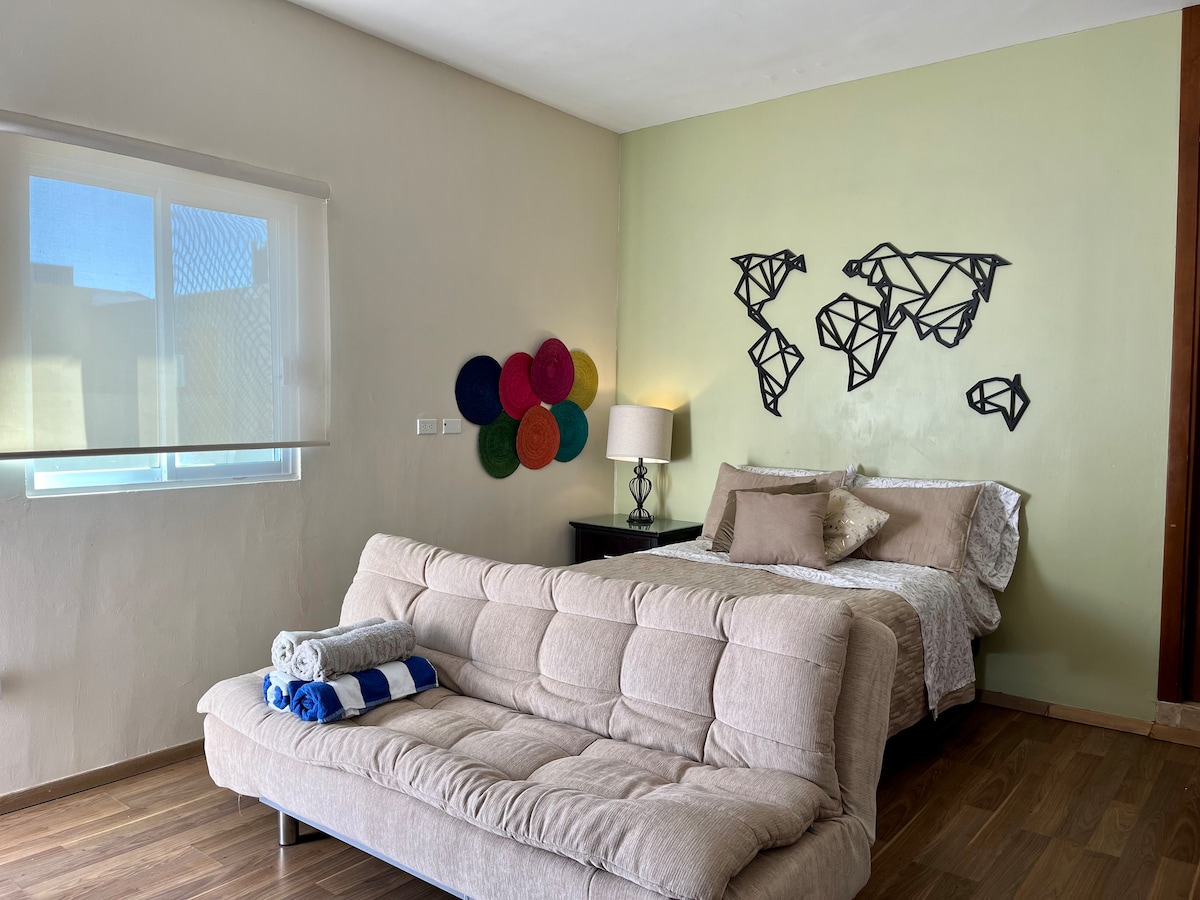 Independent studio with a touch of good taste, attached to Casa Machetes, have a nice common terrace to enjoy the sunsets and take a refreshing dip in the pool. The Tobala Studio has a king size bed, spacious closets, a kitchenette equipped with a refrigerator, grill, microwave, utensils, and a coffee maker. Add air conditioning, fan and a smart TV. It has a small balcony with ferns for the taste of smokers. Come and live the experience of being at Casa Machetes.
