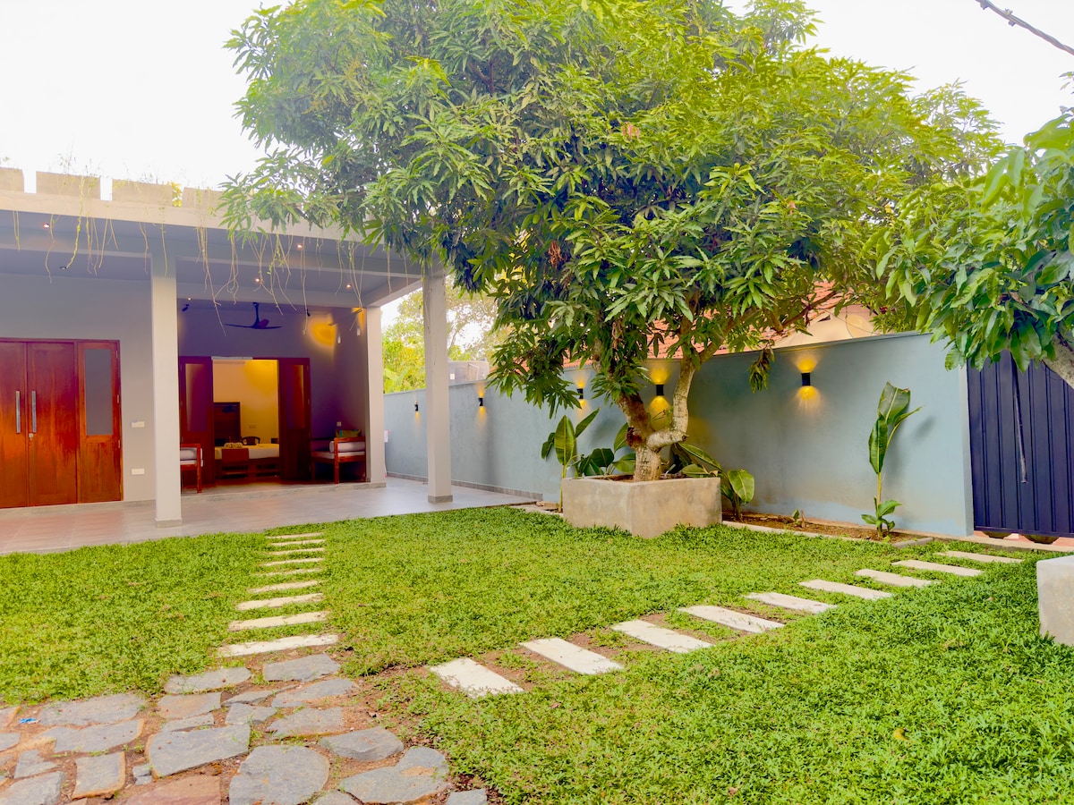 You won't forget your time in this romantic, memorable place in Tangalle, Sri lanka.Villa Chillax is a very special experience for a holiday with an exclusive, private & outstation service. located in few minutes away from most beautiful romantic silent beach with the blessings of greeny surrounding, sea breezes & sounds of splashing waves The villa consists with a fully equipped kitchen & modern bathroom,large veranda with the view of well maintained garden with exotic plants, trees & flowers