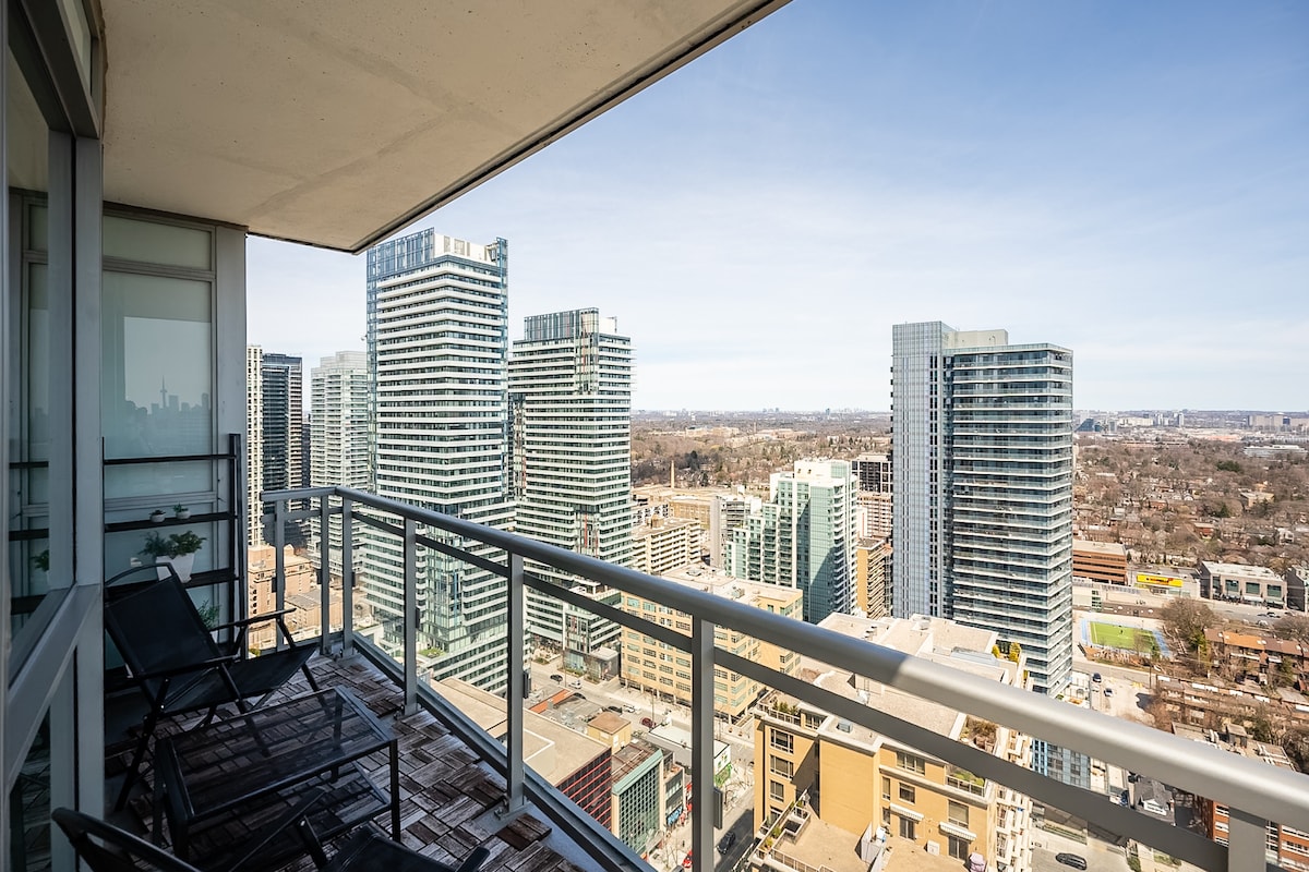Our 2 bed 2 bath condo is located in the heart of midtown Toronto in the Yonge & Eglinton area. The condo is steps away from Eglinton subway station and within walking distance to several shops and restaurants. There is a Loblaws and LCBO located on the main floor of the building. The condo has 24 hour security, underground paid visitor parking, and plenty of street parking nearby. The suite is fully equipped with everything you need and includes a private 300 sq.ft terrace with a BBQ!