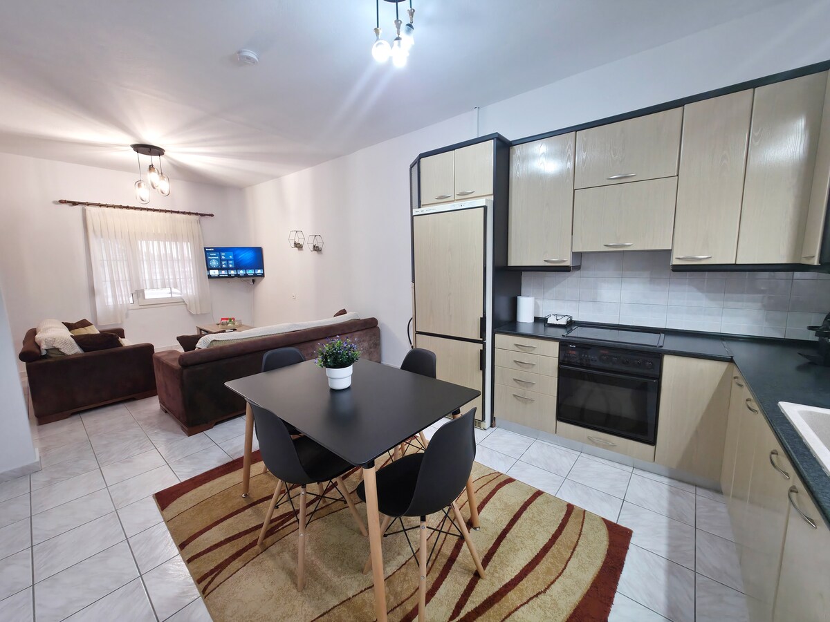 Ανεξαρτητο διαμερισμα, με δύο ξεχωριστά δωμάτια, με ένα διπλό κρεβάτι στο καθένα ( 160x200 το ένα και 140x200 το άλλο) . Το ένα υπνοδωμάτιο επικοινωνεί είναι open space με την κουζίνα. Υπάρχει γκαράζ εντός του οικοπέδου. Υπάρχει θέρμανση πετρελαίου (παρέχει επίσης ζεστό νερό - τέλη Οκτωβρίου μέχρι μέσα Απριλίου) και θα παρακαλούσαμε να την χαμηλώνεται όταν φεύγετε, κατά την διάρκεια της παραμονής σας.