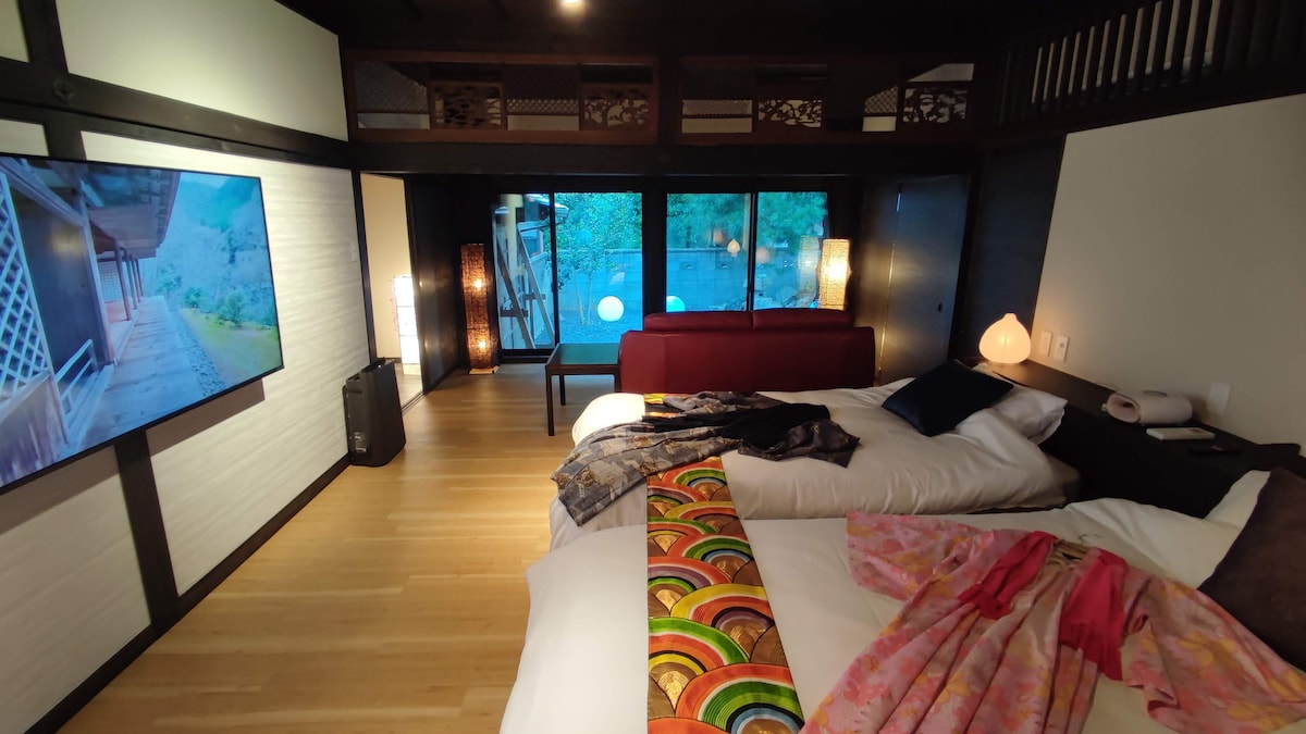 Entirely private, renovated 100-year-old private house. From the guest room, you can see Mt. Ken and the mountains with steeply sloping villages, and you can relax and forget about time in a private space. · Light breakfast included (bread in the room and in the fridge on the veranda) Free drinks in the lounge ・ One shared bathing ticket per person for Momenba Onsen or Tsurugi no Yado Iwato