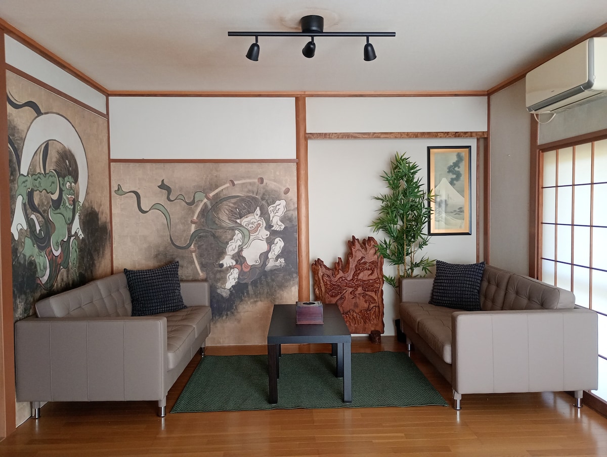 Located in the center, 15 minutes on foot from Fujisan station and 10 minutes on foot from Gekkoji station. Located in a town with the scent of Showa, "FUJI Cross Gate TASUKI" is a private rental inn with a traditional Japanese longhouse design and a spacious and comfortable modern Japanese space. The shop, which was a small restaurant, has been completely renovated to recreate the good old Showa alley. While retaining Japanese features such as sliding doors and tatami mats, the spacious kitchen-dining room is a relaxing place for groups and families. A 2-minute walk from the inn, there is a scenic point where you can capture Mt. Fuji in the front, and you can take pictures of the beautiful Mt. Fuji at sunrise and sunset. In addition, famous Mt. Fuji photography spots such as the Chureito and Honmachi Street are within walking distance. It is a location where you can encounter picturesque scenery with a camera in hand. There are also retro Showa-era shopping streets and local restaurants dotted around the area, so you can enjoy walking around the town. Fujikyu Highland and Lake Kawaguchi are also easily accessible by car. A place where quiet healing time and the spectacular view of Mt. Fuji intersect - that is "FUJI Cross Gate TASUKI". Close to this accommodation, you will find all the places you want to visit with your family.