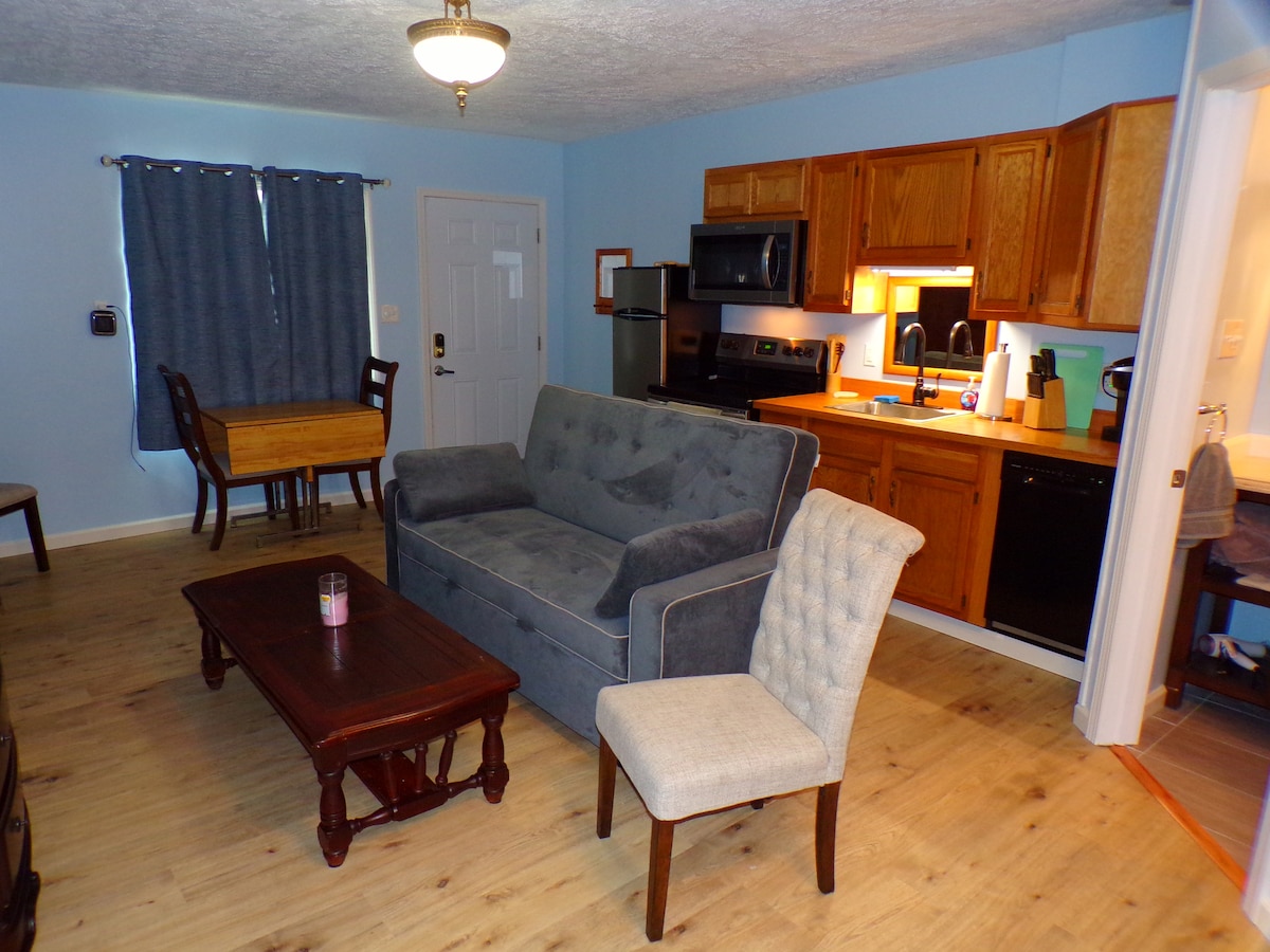 Studio apartment. Quiet country setting. Less than a 5 minute drive to downtown Oswego and the lake, less than 1/4 mile to Legends Field, 20 minutes to Nuclear plants, 5 miles to Oswego Speedway. 1 queen bed. 1 twin pull out. Microwave, small refrigerator freezer. Full bathroom. Pets allowed under 50lbs. Shared backyard and patio. Not recommended for small children.