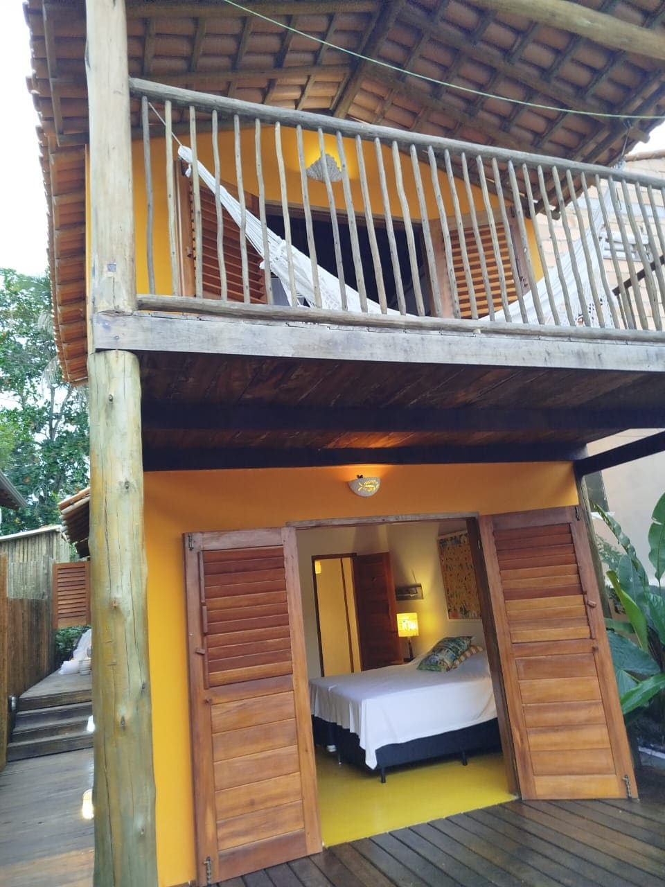 Charming house on Rua dos Navegantes, right in front of the arrival of Caraíva and with funds for Ateliê Aquarela. Accommodates up to 5 people. Accommodations: Superior room with air conditioning, balcony and private bathroom On the ground floor: 1 double bed + 1 wooden sofa bed + 1 bathroom Amenities: Full kitchen Living room and pantry Washing machine Balcony upstairs, in front and in the back Fully decorated and airy house Convenient, quiet location close to everything.