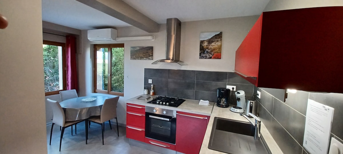 Hauts de Toscane residence, ‘Bambou’ ground floor apartment 3*** modern, functional and newly furnished. With 40m² of living space, a private terrace and free access to the garden, you will appreciate this quiet neighbourhood in Ribiers, a Provençal village. Village centre: 200 m, Gorges de la Méouge: 7 km. This is a paradise for paragliding, cycling,mountain biking, swimming and hiking! Sunshine: 300 days a year! Independent arrival: ideal accommodation for holidays, teleworking or family stays