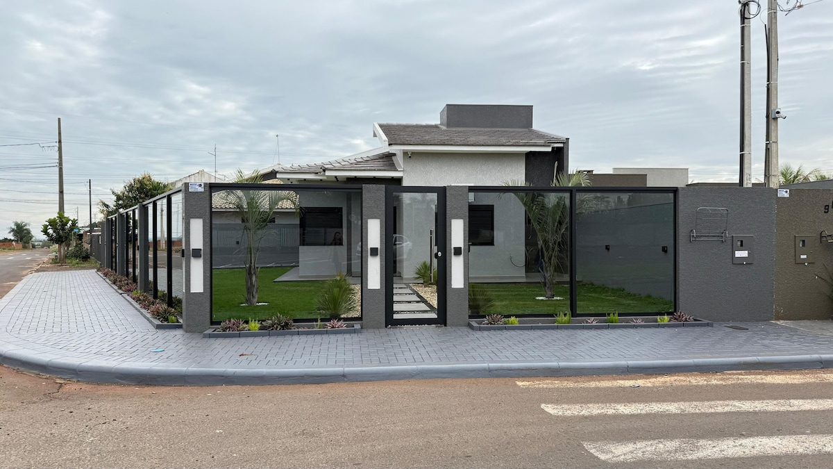 Cozy and quiet house located near the beach of Itaipulândia/Balneário Jacutinga, perfect for guests to enjoy and also enjoy the attractions of the region (fishing, water park, beach or also for work). The house is new and offers the best possible comfort, air conditioning, Wi-Fi, a large outdoor space, a swimming pool and a beautiful gourmet area.