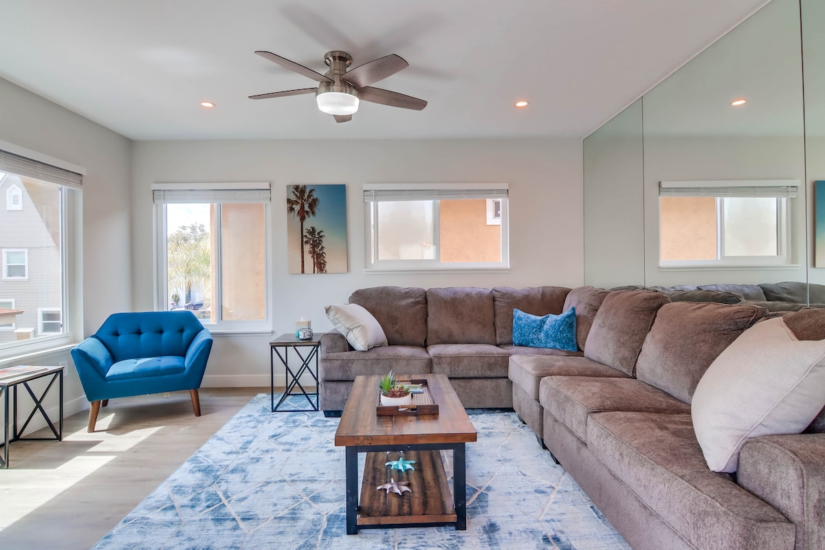 Fully upgraded 4 bedroom, 2 bathroom top floor beach condo that sleeps 8 comfortably, with a maximum of 6 adults. This spacious home underwent a full remodel that was completed in April, 2021, including: new hardwood flooring throughout, kitchen, appliances, bathrooms, quartz counter tops, and furnishings. Your family will love the location of this home, just a few blocks north of Belmont Park and nestled between serene Mission Bay and the bustle of Mission Beach.