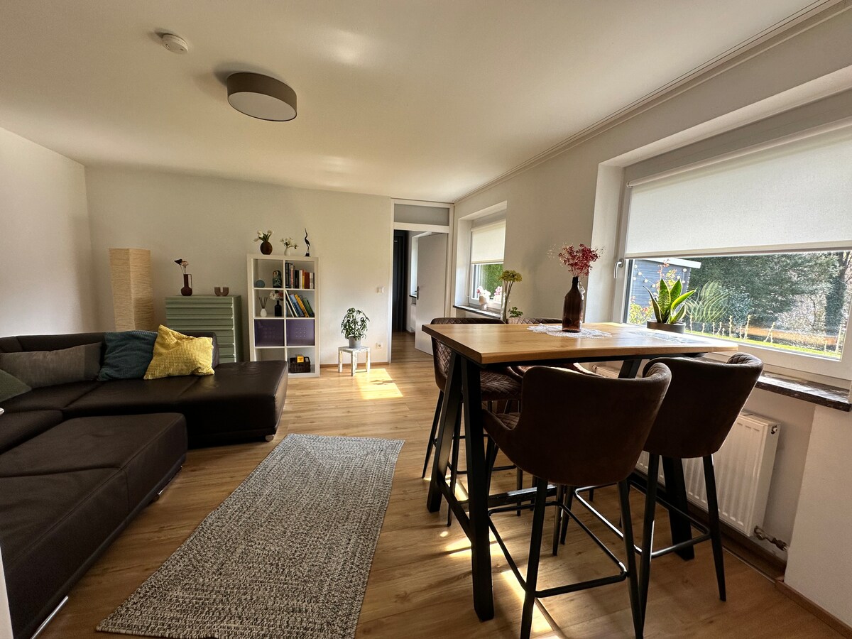 Our nice basement apartment is integrated into our residential building. It is located on the first floor on the right and has a separate entrance. The kitchen offers a spacious kitchenette with a dining area, coffee maker, toaster, large fridge, kettle and microwave The bedroom is equipped with a flat-screen TV and a relax sofa. The apartment is in a very good location. The market square is a 3-minute walk away.