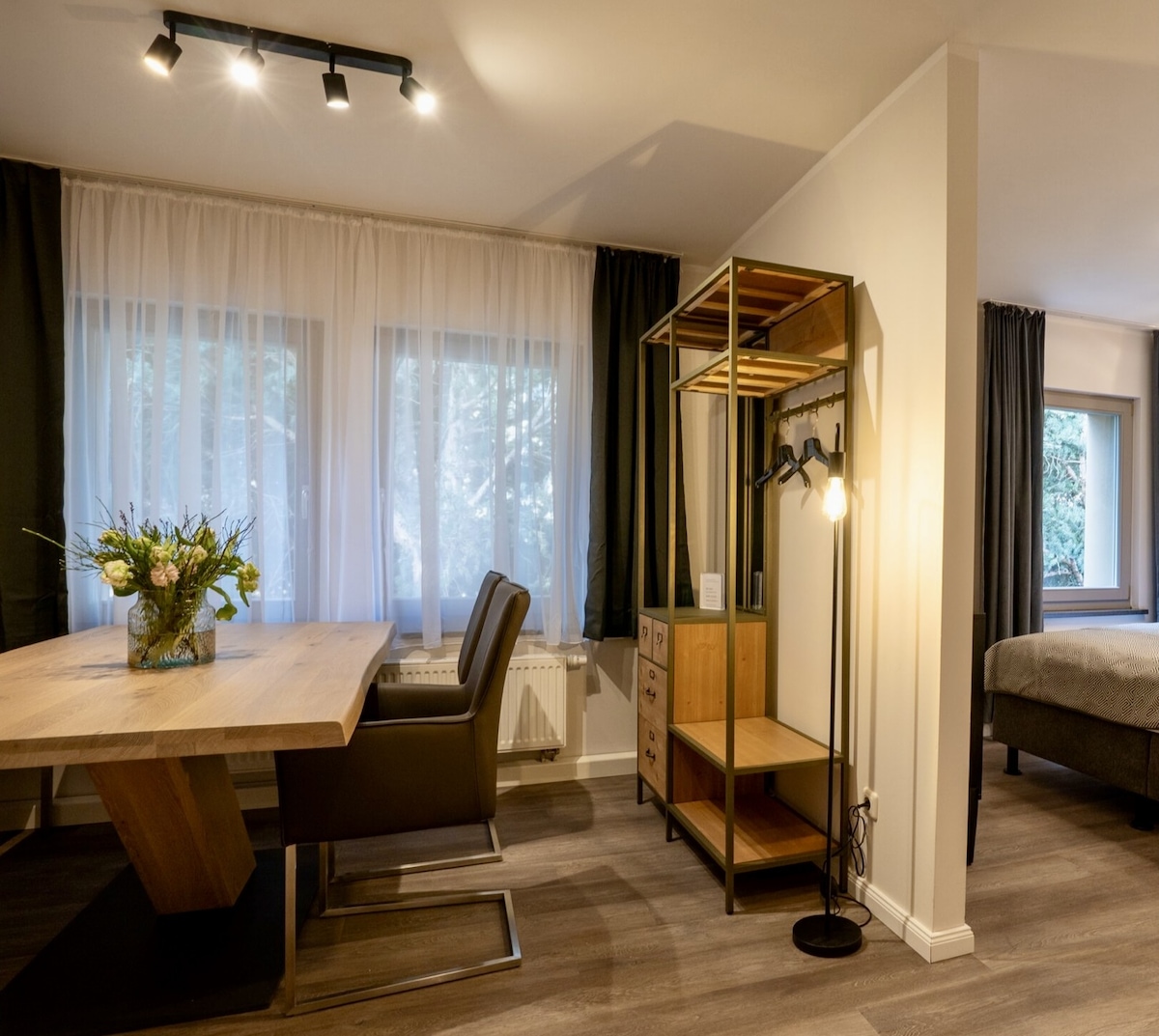 As soon as you enter this tastefully renovated apartment, you will be greeted by a bright, spacious entrance area. Modern lighting and an elegant, minimalist design create a warm and welcoming atmosphere. The apartment offers comfort and style for short and long stays – ideal for families, business travelers or tourists. We look forward to your visit!