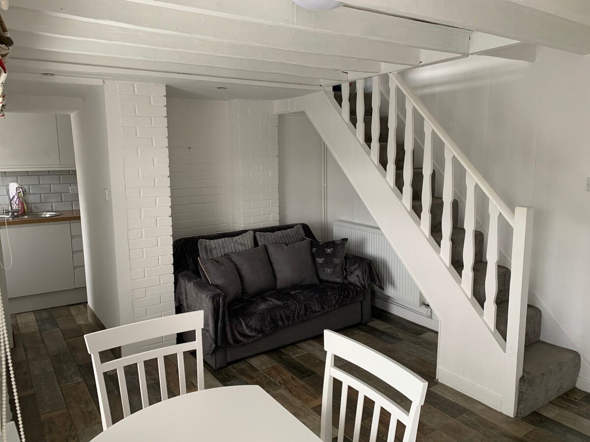 A refurbished, 1930s detached cottage with open plan kitchen & lounge, galleried style bedroom with king bed & en-suite shower. Your own private patio & parking space. The property is opposite the seafront prom & rocky beach in a quiet residential area on the edge of town. 12 minutes walk down the prom to Rhos-on-Sea harbour, sandy beach & town centre. On the North Wales Coastal Walk path & 30 mins walk to Angel Bay on the Little Orme. A great base for exploring North Wales or chilling locally.