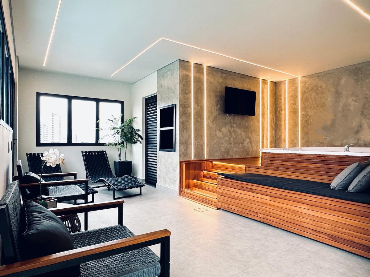 Stay at this stylish place. Ideal for business travelers or family trips. Super complete and spacious apartment. It has its own environment for a home office, the apartment is all prepared to receive babies and children, it has a crib, bathtub and screens on the windows. Condominium with fitness center and children's entertainment. 7 minutes from the universities, 5 minutes from the mall and 10 minutes from the center. Hypermarket 150 meters away. McDonald's, hamburger joint, pharmacy and other shops 350 meters away.