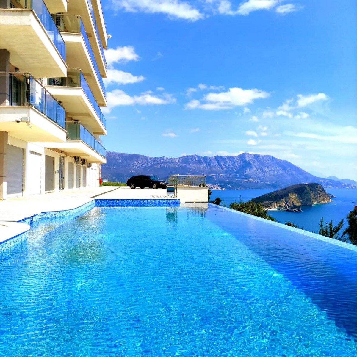 This spacious and luxury one bedroom apartment with a spectacular sea and town view is a perfect place for your stay in Budva. It offers a unique and luxurious holiday experience with: -Free use of swimming pool looking at the sea, the Old Town and whole Budva -Free private parking -Spacious balcony -Modern and stylish equipment. The apartment is located just a 750 meters away from the Old Town, beach , cafes and restaurants. We are excited to host you!