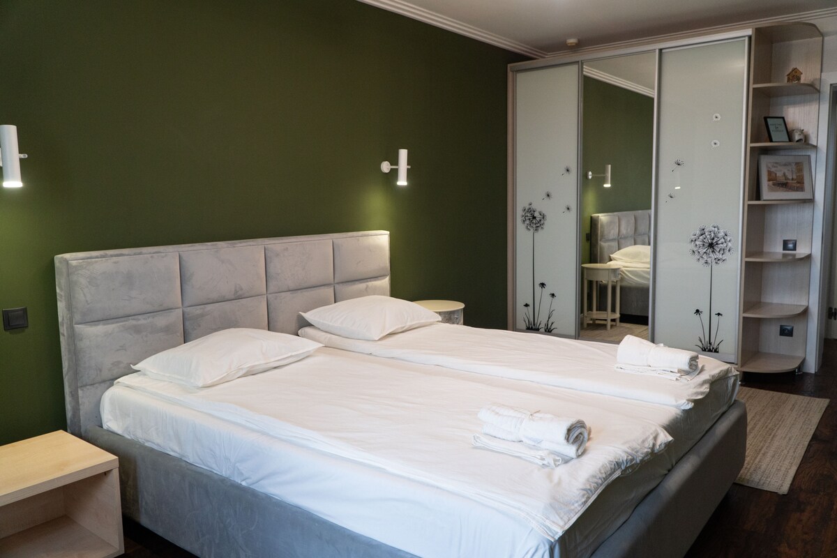 This chic and spacious apartment is located in a new and luxurious building, which is located right in the heart of Chisinau. The apartment is suitable for a relaxing stay or for a business trip. It is a perfect area to take the pulse of the whole city and to have activities of any kind: walking to any tourist attraction, shopping, going out to restaurants/terraces. Facilities: Supermarket on the ground floor of the building, free parking, arranged terrace.