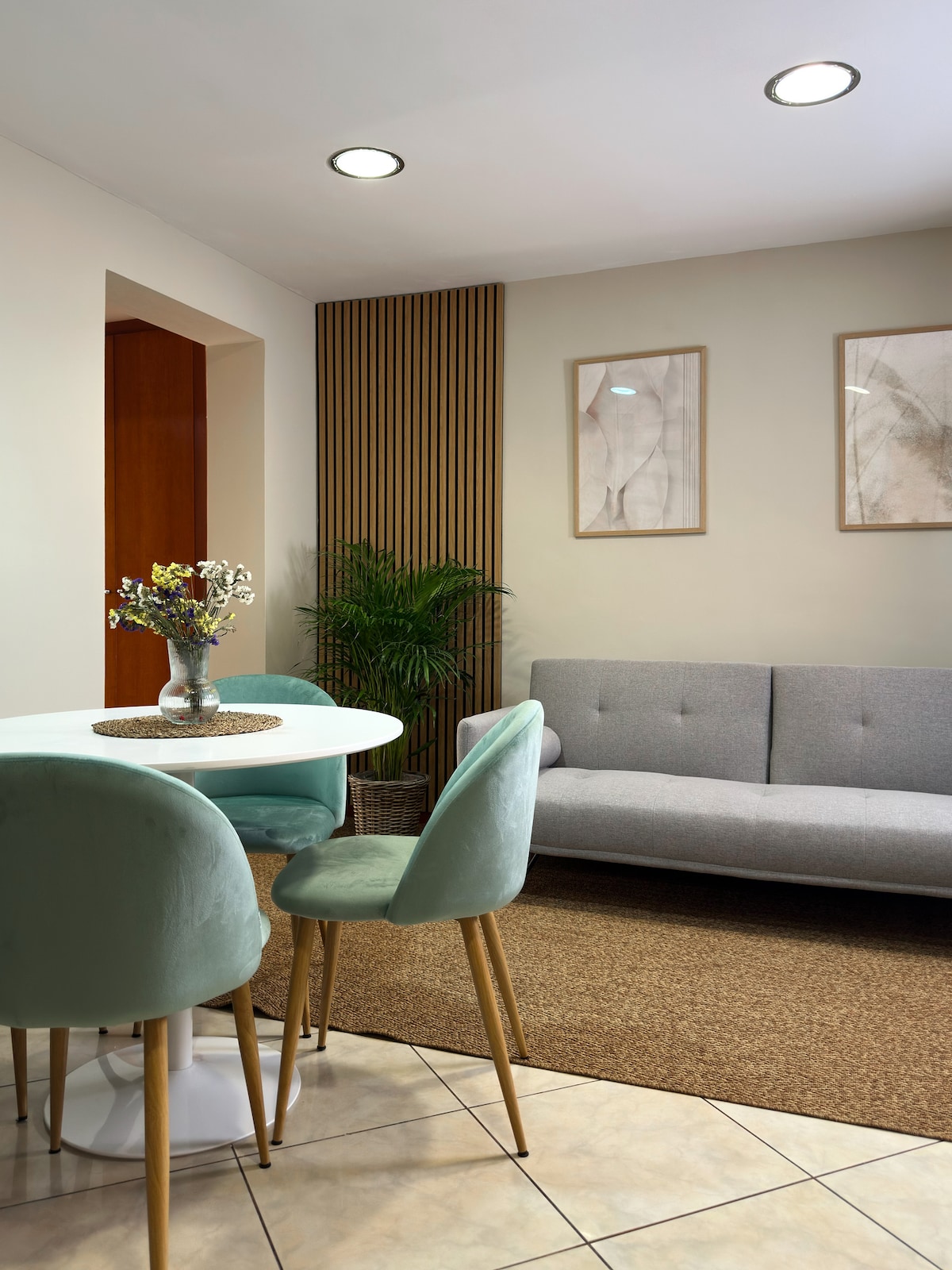 The Turquoise Apartment, overlooking the sea. Equipped with Wi-Fi, air conditioning and heating, it has a kitchen equipped with a hob, fridge, coffee set and utensils. The master bedroom has three private balconies overlooking the sea, while the elegant living room includes a TV and a single sofa bed. The bathroom, finished with fine materials, is complete with shower, sink, toilet and bidet, for an exclusive stay.