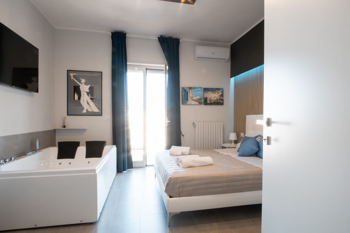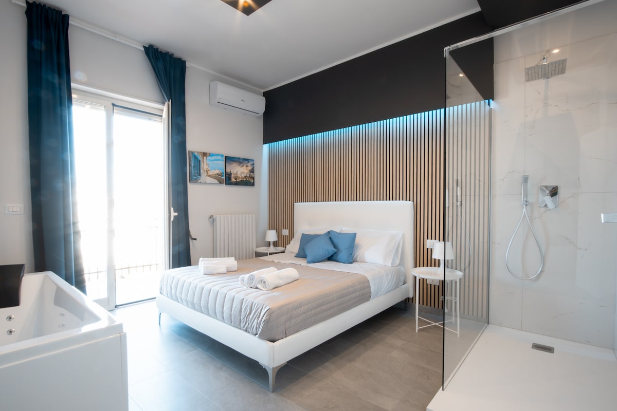 Experience the allure of Bari from Coco - Elegance Boudoir at City Gate - Luxury Central. This luxury aparthotel room, nestled in the heart of Bari, combines comfort, elegance, and Italian charm. With its prime location, ensuite bathroom with massaging shower, bespoke amenities, and an artistic ode to Coco, our muse, it's more than a stay - it's a story. Enjoy a personalized Bari guide, ensuring an unforgettable, tailored journey through this historic city.