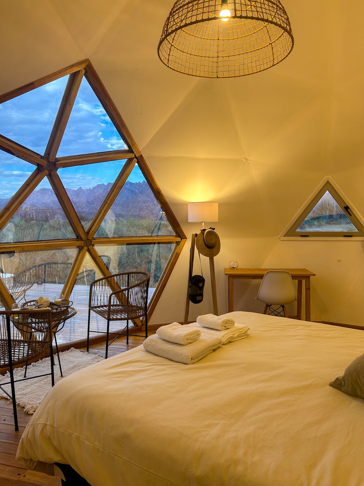 It is located in the town of Angastaco, a town in the department of San Carlos, in the Calchaquíes Valleys, 265 km from the city of Salta. Colmena EcoGlamping is just 2 km from Quebrada de las Flechas, a natural monument made of simply impressive rock formations that look like arrows coming out of the earth. Away from the hustle and bustle of the city, Colmena is a magical place that invites you to connect with nature in an intimate way in the serenity of the Valleys.