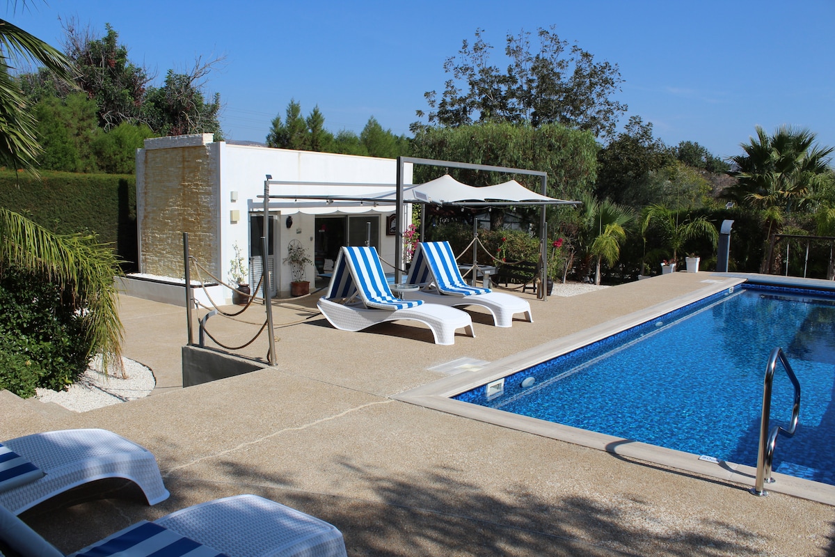 A 6 minutes de la Méditerranée en voiture, cette maison se trouve à l'extrémité du village de Pentakomo. Il se distingue par le calme et par la vue impressionnante sur le relief. "Endless Sunset". Ce petit paradis compte 2 terrasses. Elle se trouve à 40 minutes de l'aéroport Larnaca et à 20 minutes de Limassol. C'est un endroit idéal pour se reposer. En outre il y a un grand choix de restaurants de fruits de mer à la plage et à 50 mètres vous trouverez le restaurant cypriote "Dragon Nest".