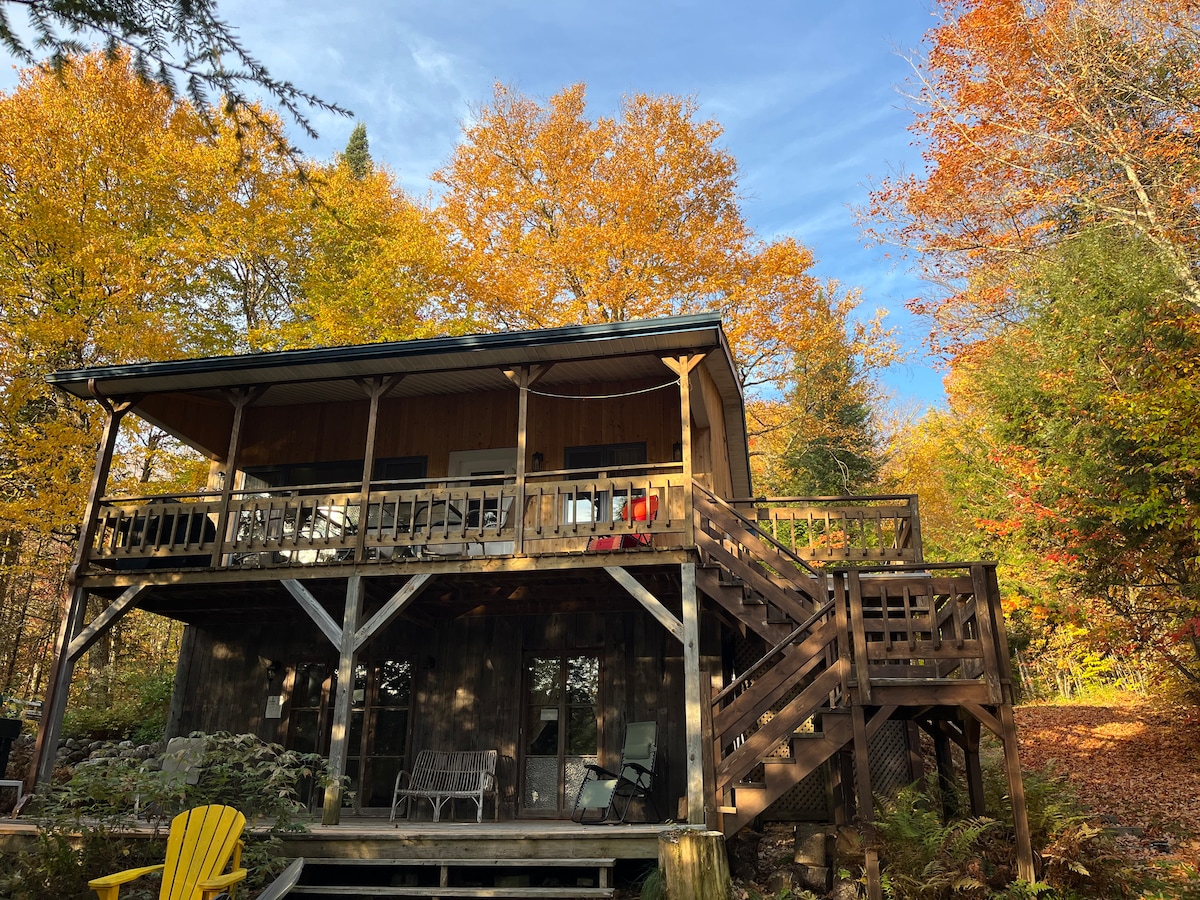 Lakeside Private Chalet for 2. Outdoor Spa, Large Deck, Firepit, 2 x Kayaks, Canoe, BBQ, PS3, 2xTV's with Roku, Woodburning Stove, Full Kitchen, Close to World-class Golf, Hiking, Road, Mountain & Fat Biking, Parc National Tremblant, Tremblant Ski Resort, Mont Blanc, Swimming, St. Bernard, High Speed WIFI, Washer/ Dryer, self check-in, privacy, comfortable. A wonderful, private and relaxing Chalet with as much or as little activity that you desire. Legally registered.