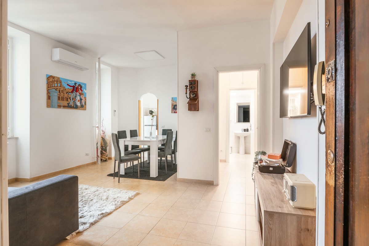 Enjoy Rome in a true home where design, colors, and comfort blend in perfect harmony with the light, making you say, "WOW!" Fully equipped, easy to reach whether you're arriving by train or plane, suitable for short or long stays, whether for leisure or business, it's located just outside the city center, close to all its tourist attractions yet in a safe, quiet, and strategic area for exploring the city: on foot, by bike, or by bus, this place is perfect for you and for experiencing Rome!