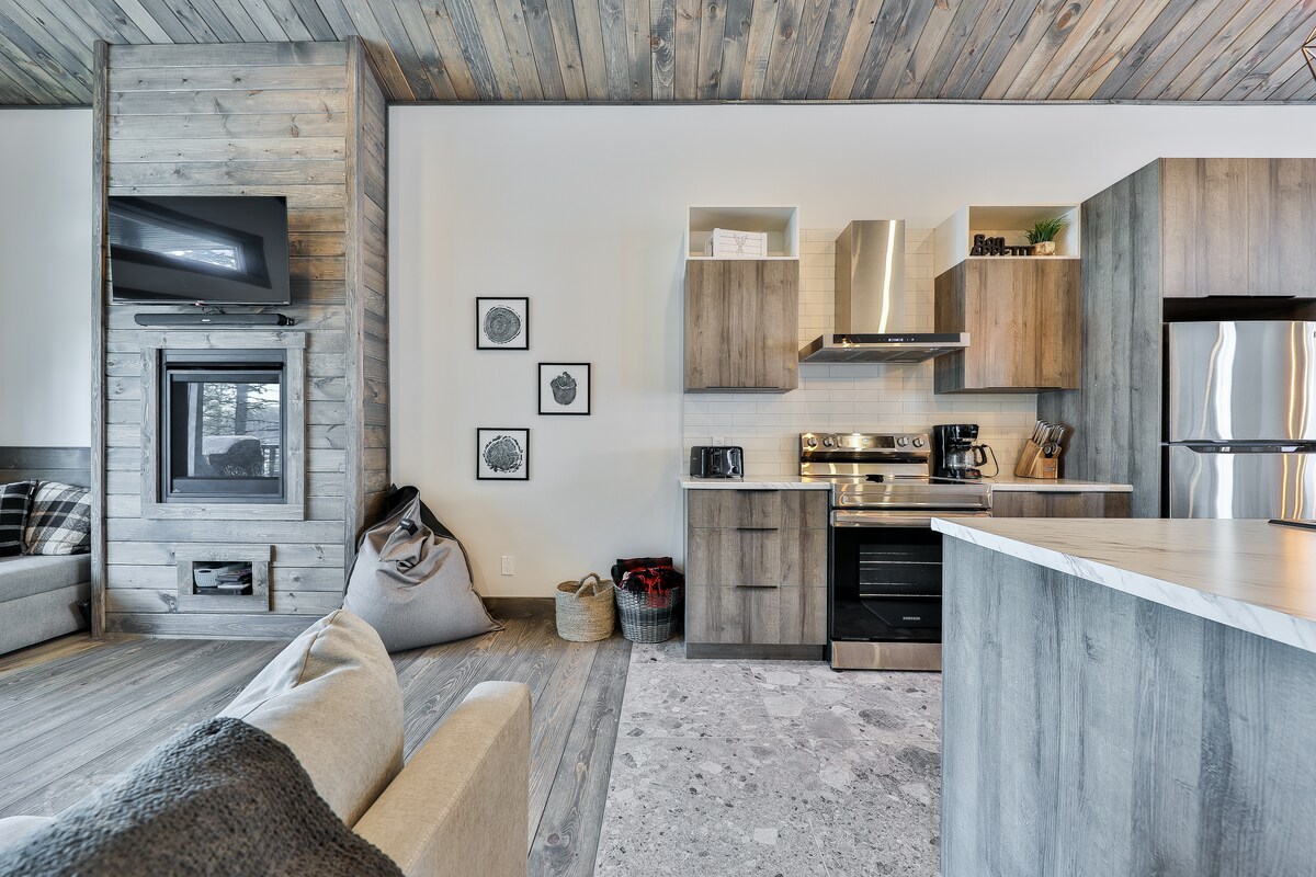 New chalet located in Chertsey in the Lanaudière region, the La Souche chalet will charm you with its rustic, modern and bright decor. Enjoy stunning views of the lake from its large windows or opt for adventure with its direct access to the waterfront. Use of a Terraflo electric pontoon included! You will have the opportunity to recharge your batteries in this oasis of relaxation thanks to its year-round hot tub, unparalleled comfort and proximity to the ski slopes