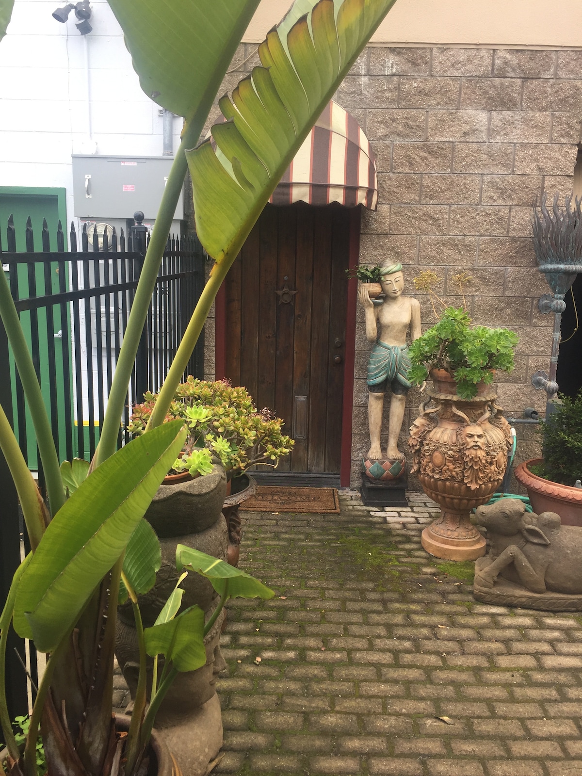 A comfortable space with private entrance and bathroom. Light & airy with high ceilings and garden view through a large picture window. Queen size bed, ceiling fan, gas heater\fireplace, 35" flat screen swivel TV, Keurig coffee maker, and a large roll-in shower. Mini fridge, microwave, spacious patio & fenced yard right outside the door. There is NO KITCHEN. Dogs welcome with pre approval. $25.00 dog fee per stay. Due to extreme allergies cats are not allowed.