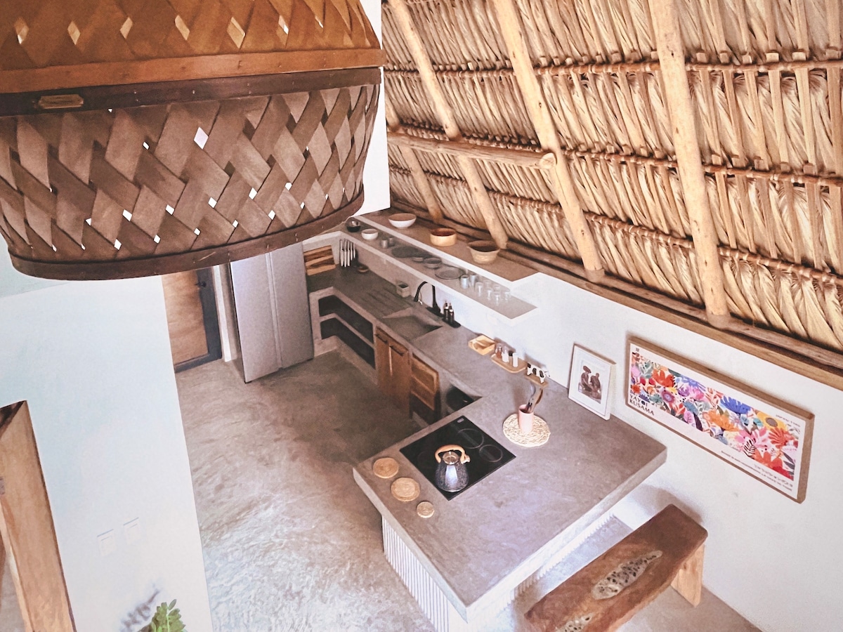 If you like oceanfront sunsets, natural environments, and comfort without luxury, you'll love our house. It has its own pool, 3 bedrooms with their own bathroom (4 people per room), palm trees and a spectacular view. Our house has fresh water that comes from a nearby well. The pool is also freshwater. The house's kitchen is very well equipped. We frequently renew pots, pans, cutlery and others so that they are always in optimal condition.