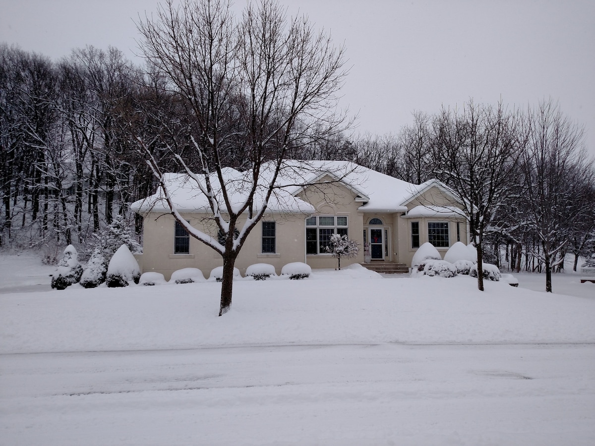 Welcome to my little 8 acre oasis! Being the first farm I’ve ever lived on, I understand the peace and tranquility it can offer those who have never experienced it. Enjoy meeting my horses and mini donkeys, take a walk through my woods, or have a fire! Aside from being just far enough, but just close enough to all the happenings in the city, my newly remodeled private entry, ground level basement apartment offers an escape from the noise and a place to unwind and relax. NO CHORES REQUIRED! 😊