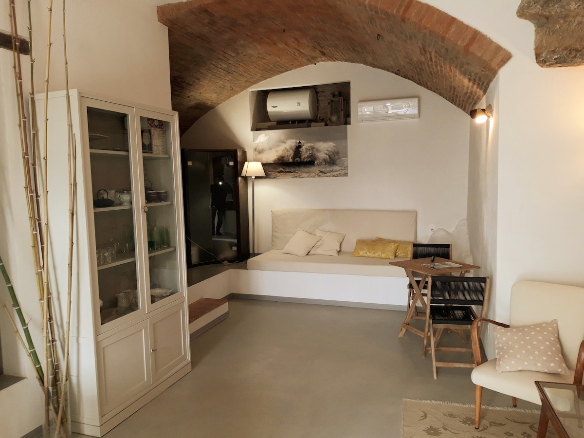 Large apartment furnished with antique furniture with an incredible view of the Val di Cornia and the Etruscan coast. All the windows offer wonderful views of the valley below and the coast. Our home is equipped with a kitchenette, a bathroom, a large living room and two large bedrooms that can accommodate up to 5 people. The location is on the second floor of a historic home. A large terrace is at your disposal where you can spend unforgettable evenings.