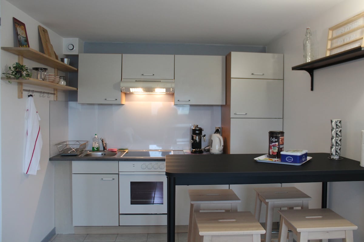 Come and discover this 40 m2 Scandinavian apartment, refurbished and located on the ground floor of our house, the old village forge. The village of Oye-et-Pallet will delight you with its geographical location (Pontarlier 5 min, Métabief 15 min, Swiss border 25 min), its setting (forest, hiking trails, river with swimming point and Lake Saint-Point within walking distance) and its small shops (bakery, florist, grocery store, pizzeria, beautician, hairdresser). It's a good place to stay!