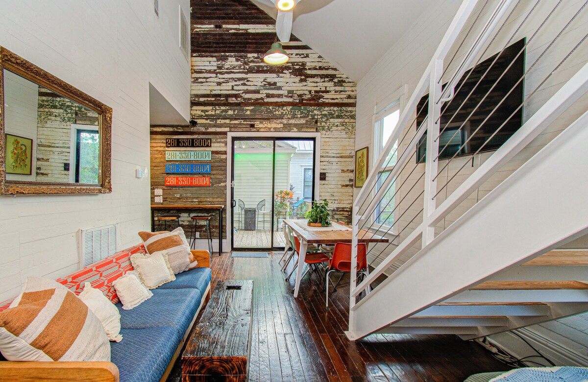 “Houston’s coolest Airbnb”–Houstonia magazine. A thoughtfully restored 1890s Victorian home in Houston’s East End. Easy access to downtown and World Cup venues. The Plant House is a tree-shaded oasis just 7 minutes to downtown by light rail. Stay in an artist-designed home with 4 bedrooms, 3 bathrooms, and sleeping for up to 9 guests. Enjoy soaring ceilings, unique furnishings, spacious yard, hammock garden, grill, and picnic tables—walkable to top Houston restaurants and nightlife.