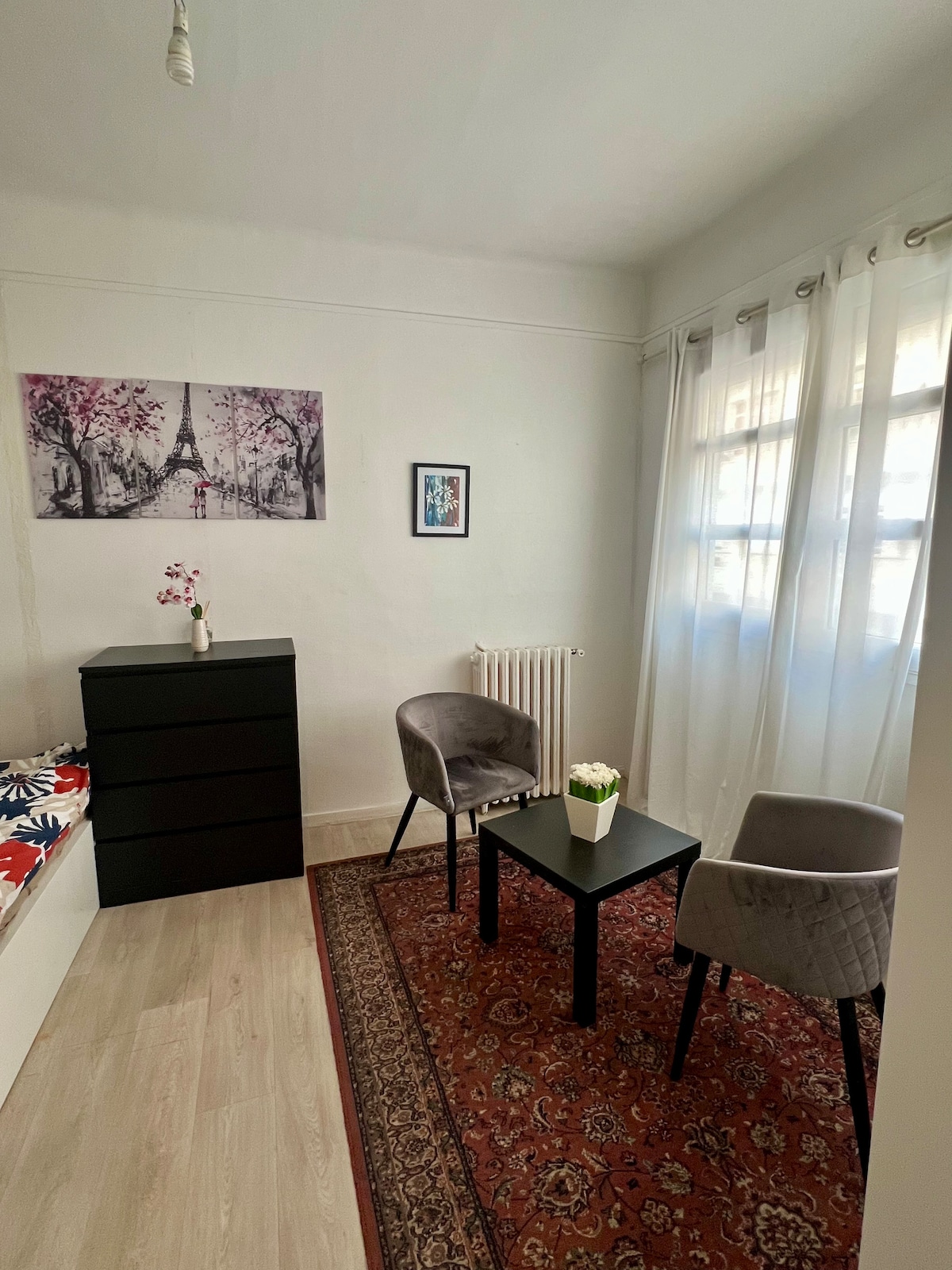 FOR 1 PERSON ONLY In a house-building converted into several independent studios, 2 separate rooms on the 1st floor: - bedroom with kitchenette - shower room with toilet and sink facing the bedroom, you will have to cross the small hallway. The 2 rooms are private, locked, only you use them, only you have the keys. Nothing to share. 90 x 200 cm bed for 1 person only 6-minute walk to Bagneux Lucie Aubrac metro station No private parking, difficult parking.