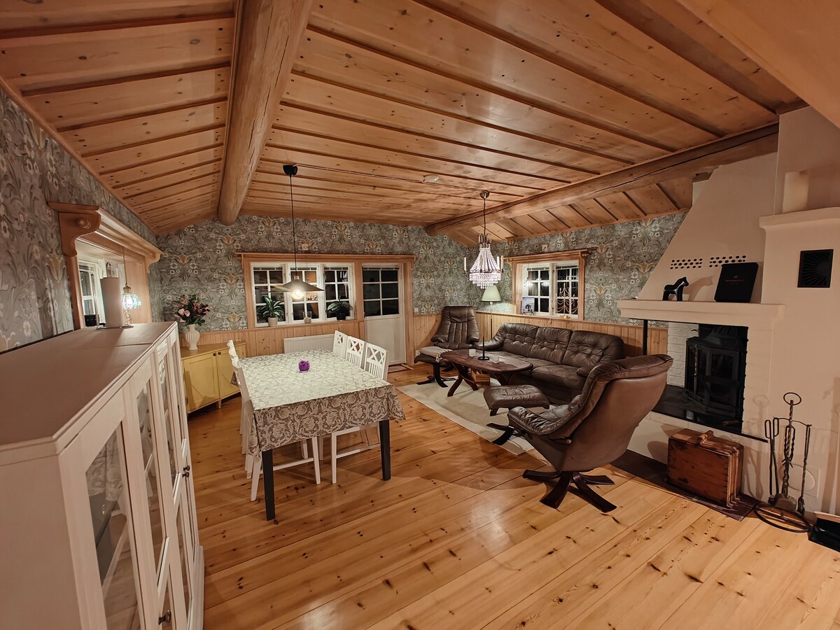 Well-equipped cottage with a fantastic location and lovely views in a mountain pasture environment. Self check-in 2 bedrooms, 6 beds. Duvets, blankets, and pillows are available. Preferably bring your own sheets and towels (can be booked for a fee). NO pets in bed or on the sofa! Modern kitchen: stove with induction stove, dishwasher, fridge, freezer, pantry, microwave, wood stove. Toilet with shower, washing machine, tumble dryer and drying cabinet. Fireplace and TV. Fiber network and WiFi. Private parking with charging station. Close to nature, berry picking, swimming lake, ski resort, and convenience store in Grönklitt