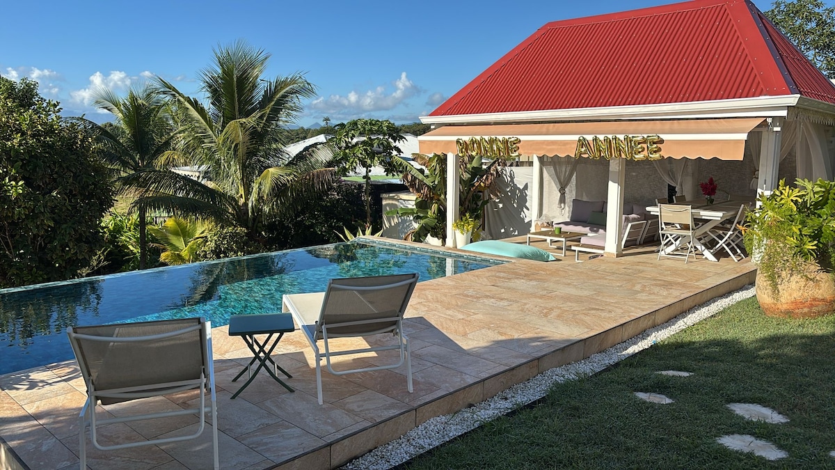 Enjoy this green setting as a couple, family or friends that offers an ideal disconnection setting for your stay. Conveniently located, less than 10 minutes from the airport, the first marina, supermarkets and shopping areas, the accommodation is 5 minutes from the new hospital. Villa Flo offers you a carefully appointed setting, composed of a living room, two terraces, a master suite, a kitchen and outdoor amenities: swimming pool, garden and carbet.