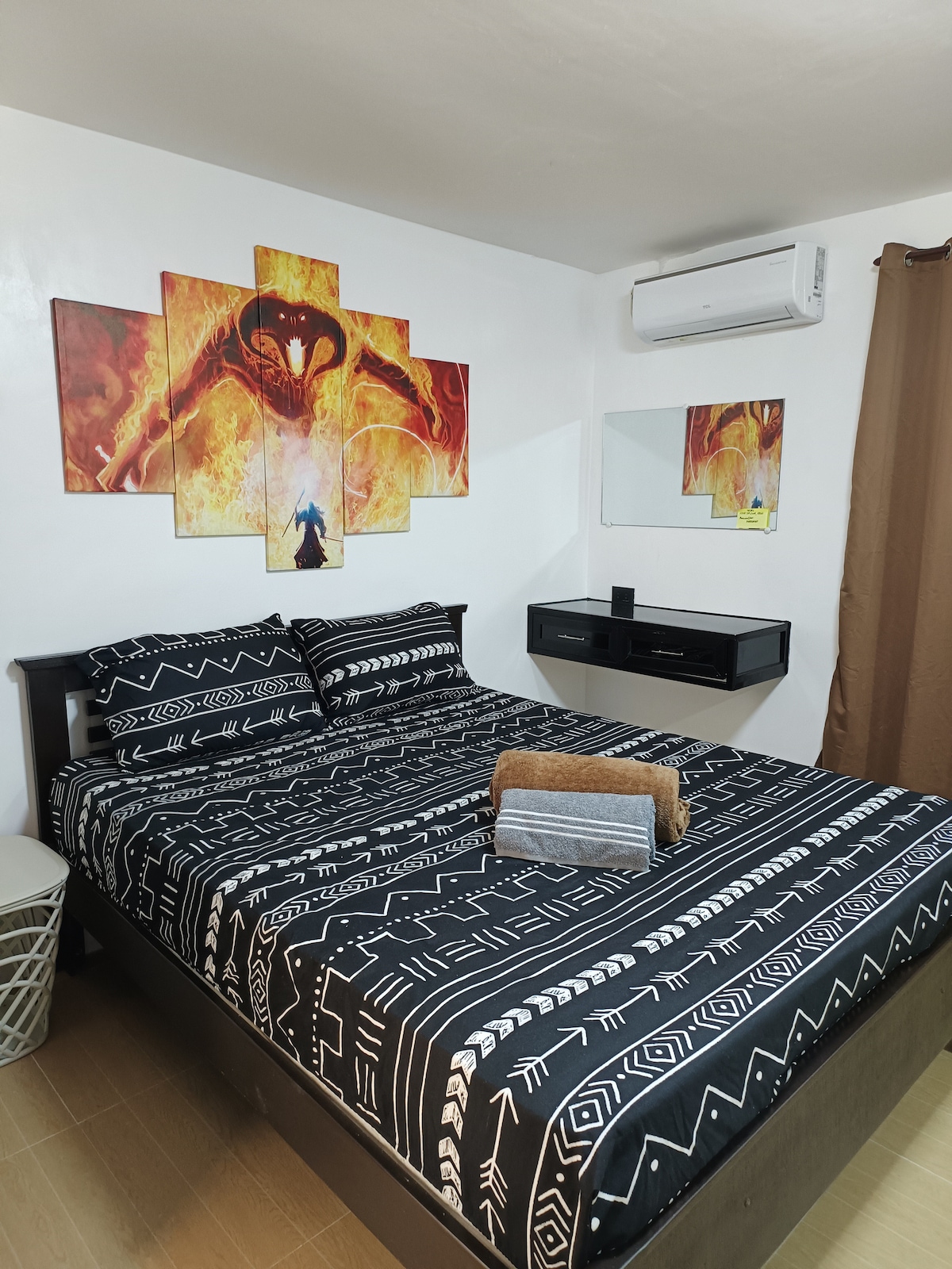 Located at Monaco Building Rm. no. 1408. INCLUSIONS: ⦿ Free Parking Same Building level 2 Slot 9 ⦿ Queen-Sized Bed ⦿ Fully Air-Conditioned Suite ⦿ Smart TV with Netflix ⦿ Free Wifi ⦿ Dine in Set ⦿ Complete Cutlery ⦿ Hot and cold Shower ⦿ Large Fridge ⦿ Induction Cooker ⦿ Microwave Over ⦿ Rice Cooker and Electric Kettle ⦿ Free Bottled water and 2 Guest Kit Toiletries AMENITIES ⦿ Man-Made Beach - w/ Fee (200/pax) close every Tuesday Free Use: ⦿ Sky Garden, Podium , Roof Deck