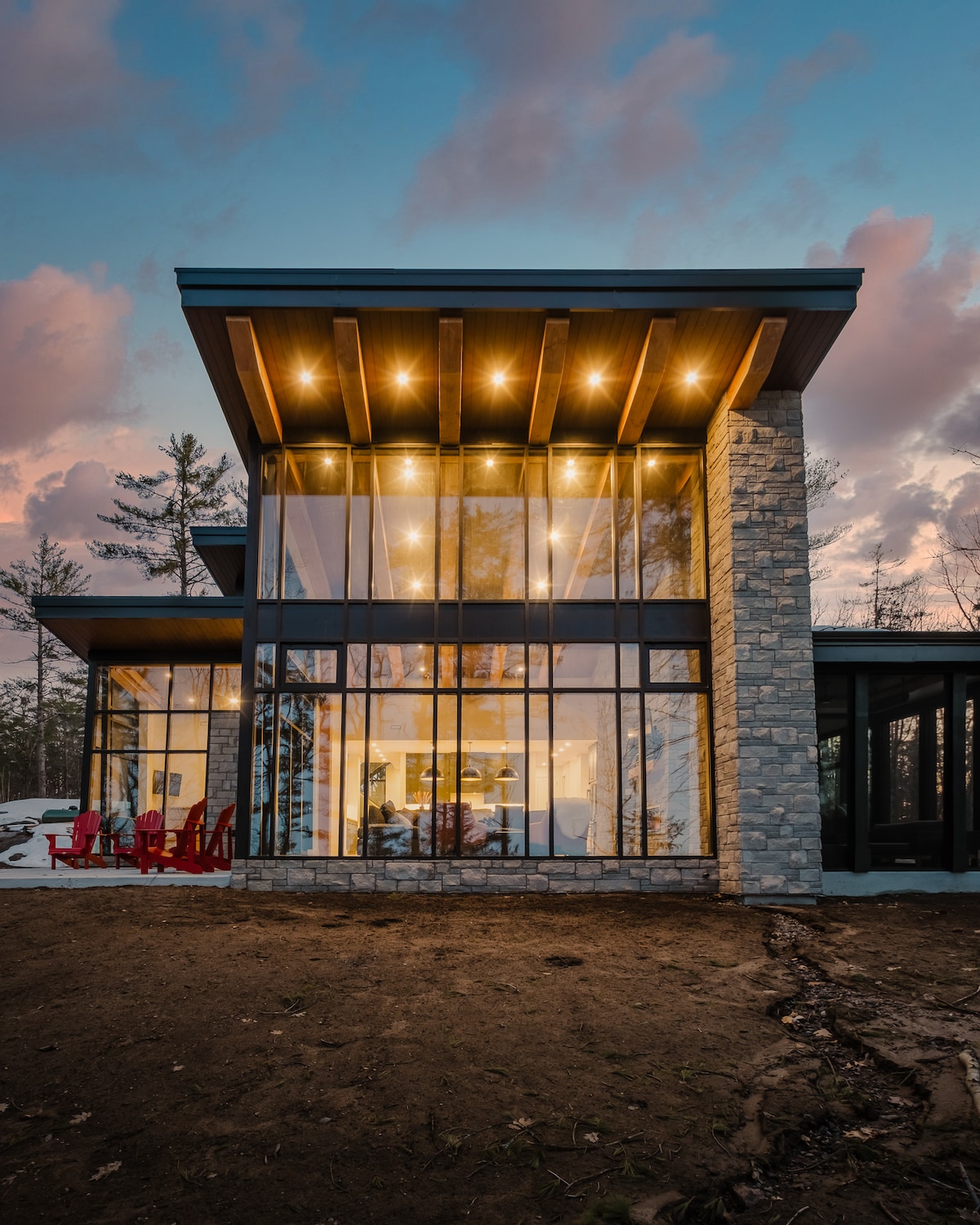 Escape to the Aux Box, a boutique luxury cabin nestled in the Muskoka woods with serene river views. Designed for comfort and style, it features in-floor heating, custom cabinetry, and premium amenities. Step into your private Nordic Spa with a sauna, hot tub, and cold plunge for the ultimate relaxation. Enjoy total seclusion while being less than 10 minutes from the shops, dining, and charm of downtown Huntsville. A perfect blend of nature and luxury awaits.